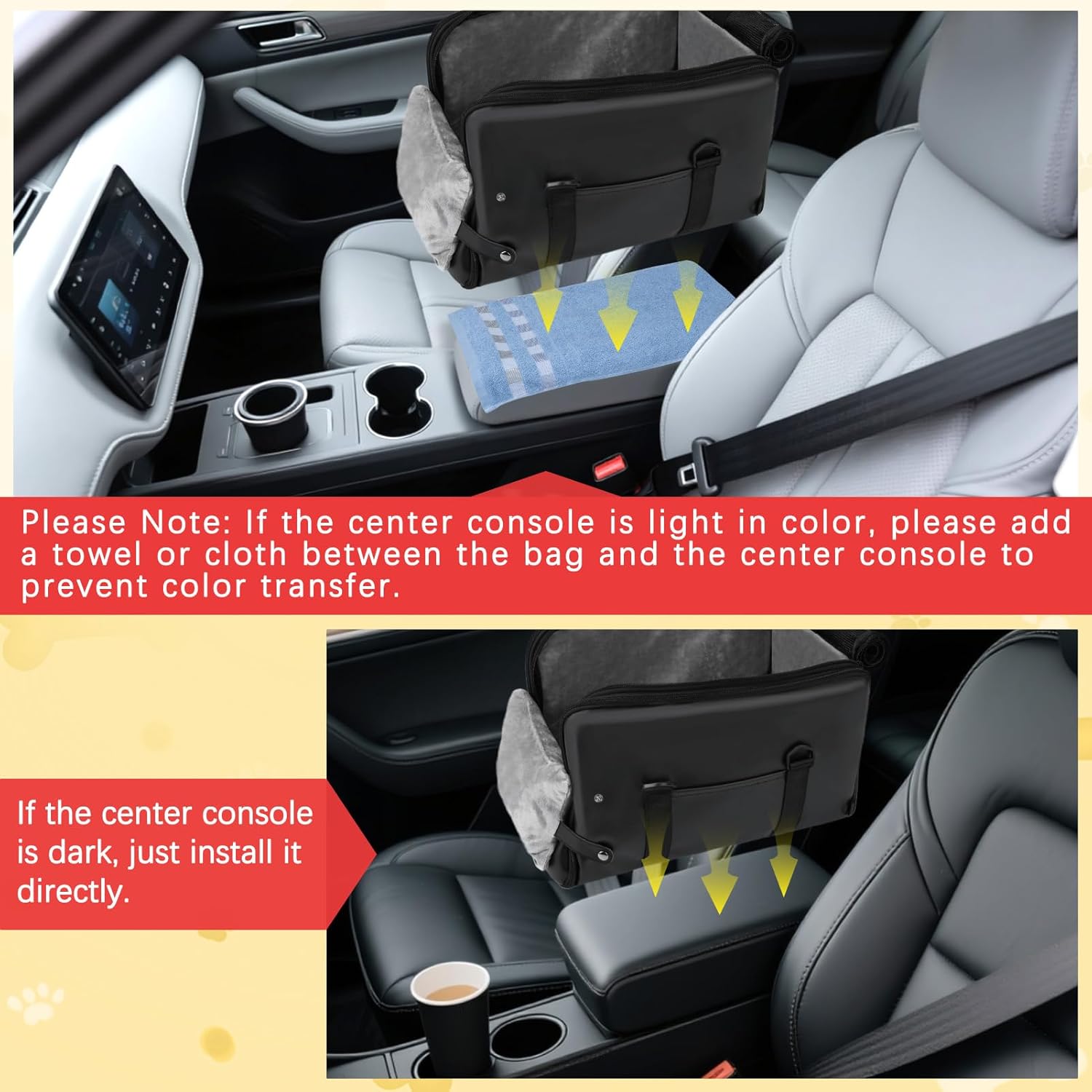 Fits for Most Center Consoles: The dog booster seat’s bottom straps can be attached horizontally or vertically to accommodate different center armrest: single door armrest, double door armrest and side open armrest. It is easy to assemble and install on the car by following the videos, and it is also easy to remove