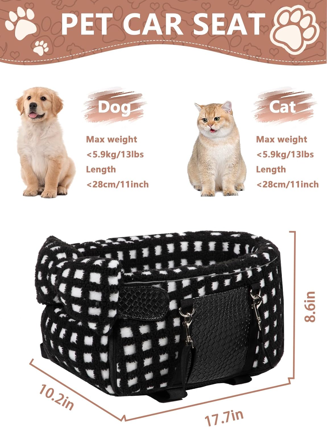 Experience the luxury of Prpeko’s car dog seat,crafted from high-density foam,sturdy straps,and water-resistant fabric.Offers stability,comfort,and style for pets under 13 lbs.