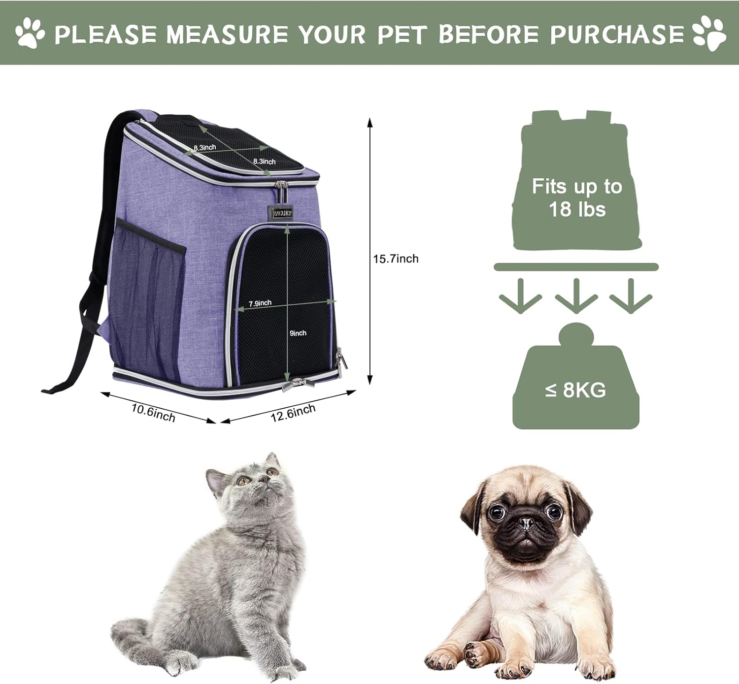 Please Measure Your Pet Before Purchasing:This cat carrier backpack dimension is 12.6″L x 10.6″W x 15.7″H,perfect for dogs/cats up to 18lbs. Easily fits small/medium-sized pets!