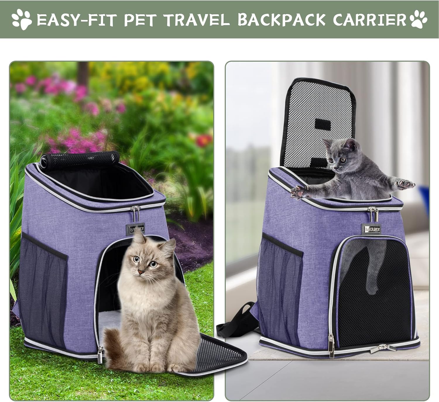 Comfortable & Convenient:This cat carrier backpack comes with two entrance—big middle door and top window for getting in and out conveniently.Removable cosy mat for easier cleaning and let your pet enjoy it inside.Let your pet enjoy it inside.