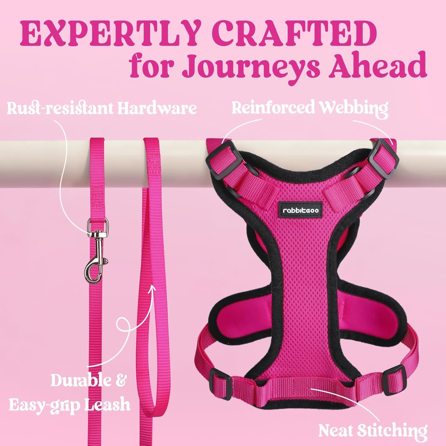 Rabbitgoo Adjustable Cat Harness & Leash – Escape Proof Soft Vest, Rose Red
