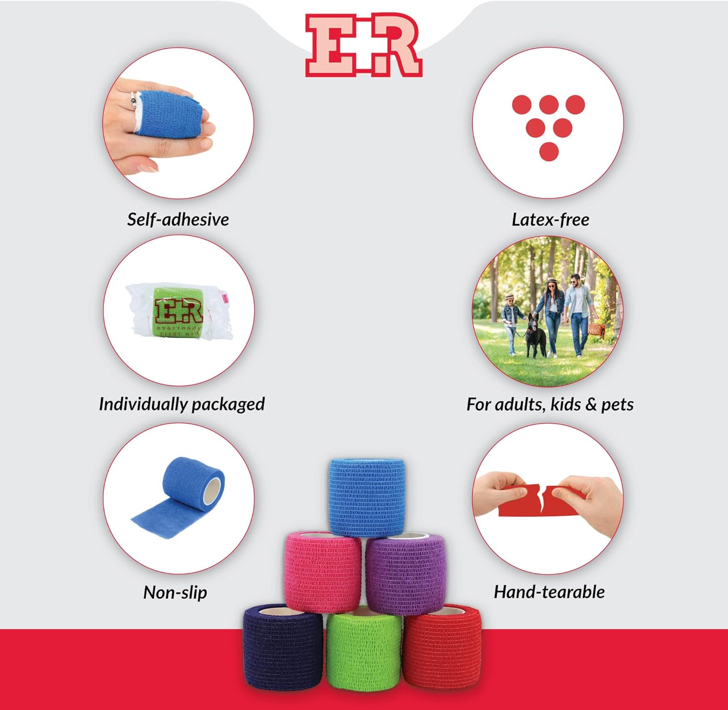 Ever Ready First Aid 2″ x 5 Yards Latex Free Self-Adherent Cohesive Bandages, Rainbow Color – 6 Count