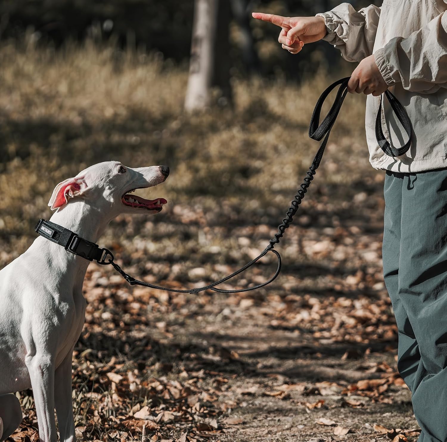 BUNGEE BUFFER: Bungee mid-section to absorb shock when the dog lunges or pulls to prevent injury and risk of choking, offering them more freedom to explore