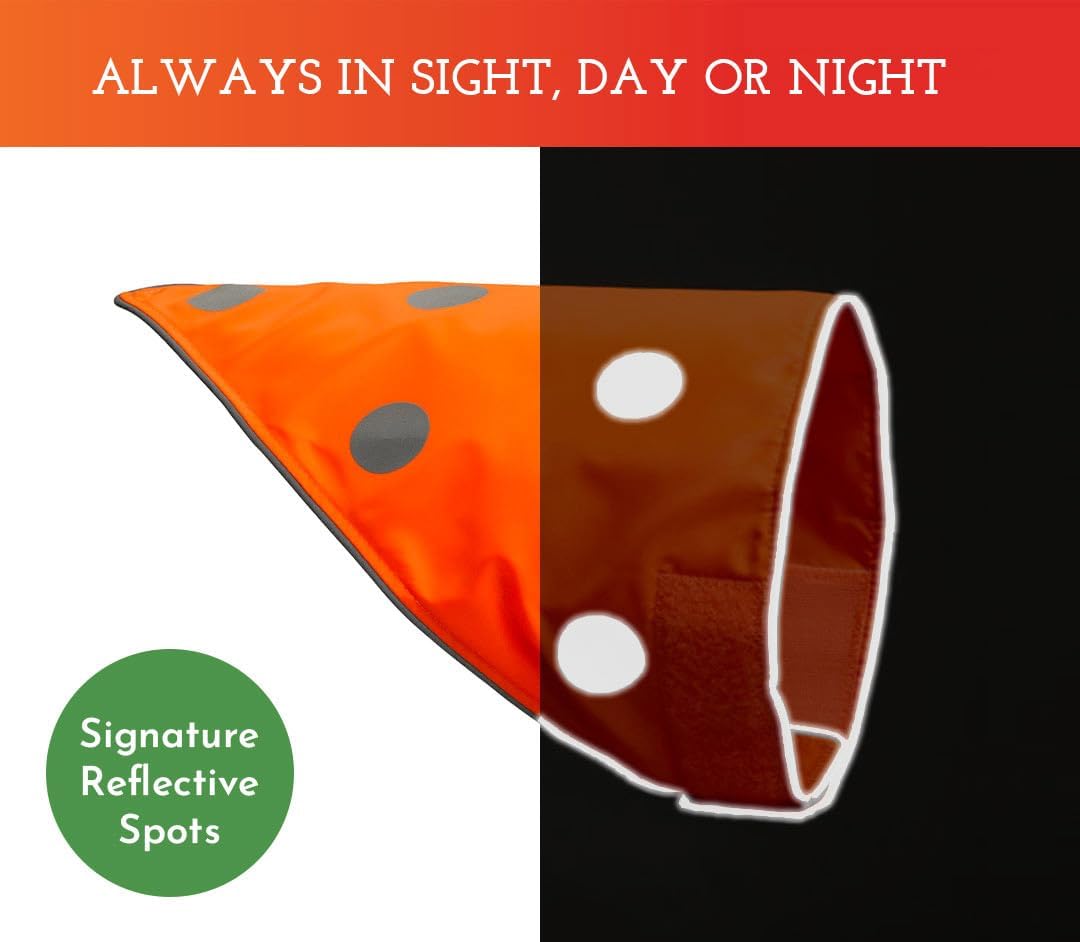 🌲 SPOT THE DOG! Reflective Dog Bandanas – High Visibility Safety Dog Accessories for Small, Large Dogs, Orange Collar, Scarf, Kerchief, Bib for Hunting, Camping, Walking at Night (Blaze Orange, M-L) — Outdoor Dog Gear Review & Current Price