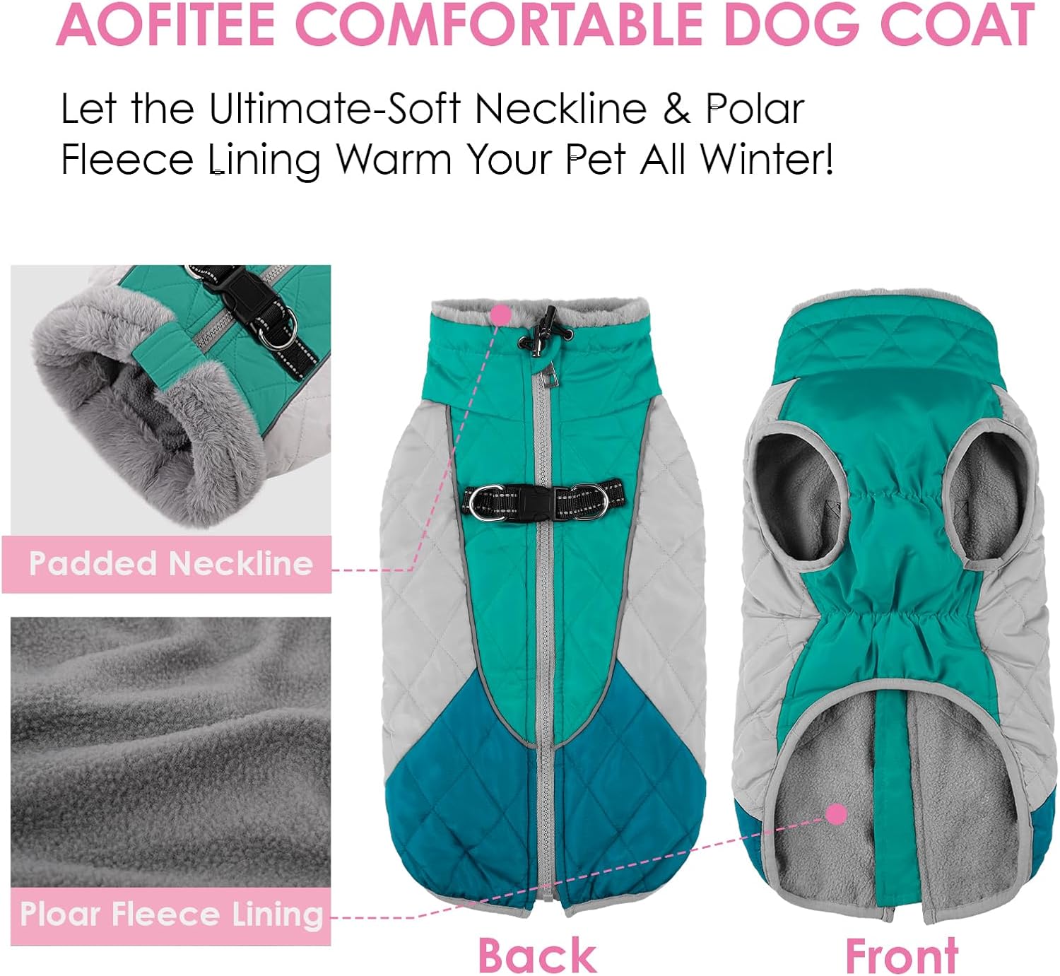 AOFITEE Winter Waterproof Dog Jacket with Harness Built in