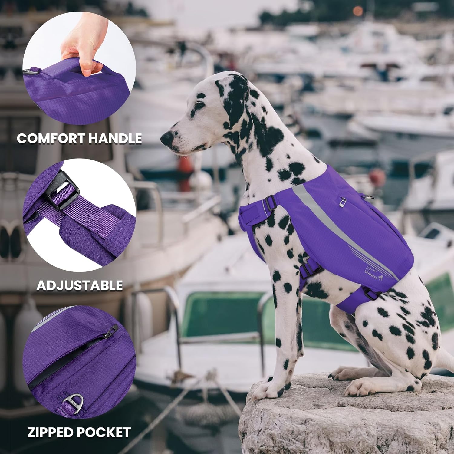 Reflective Y-Shaped Dog Backpack with Handle & Pockets – Ideal for Hiking and Travel (Purple)