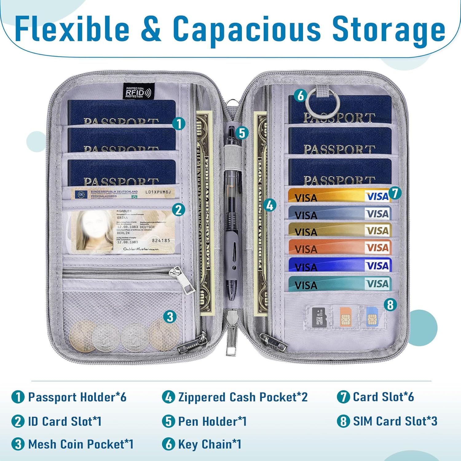 RFID-Blocking Passport Holder & Travel Organizer Wallet (Grey)