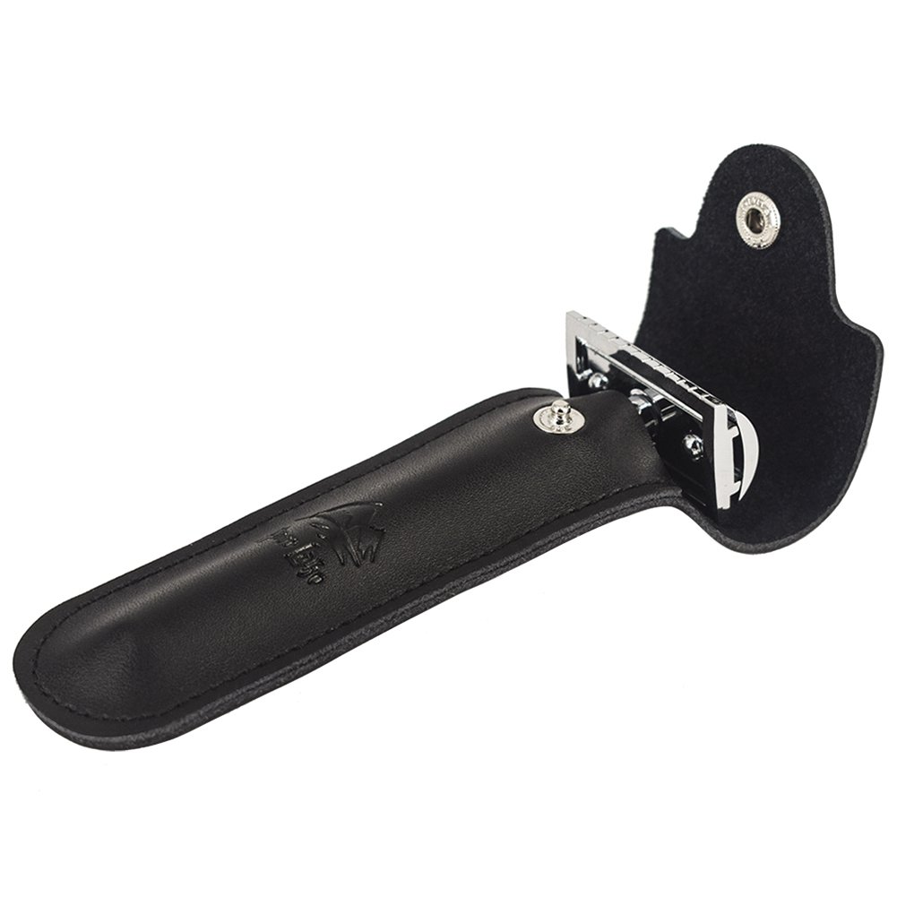 RIVERLAKE Leather Travel Case for Double Edge Safety Razor – Black