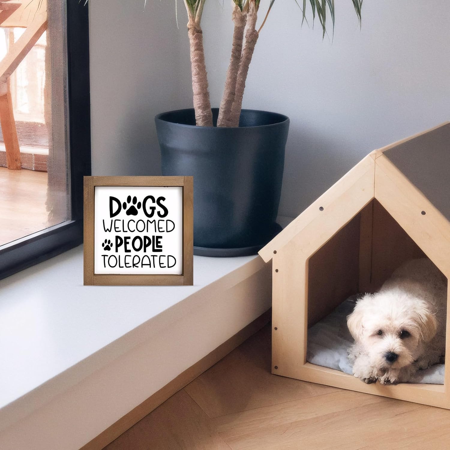 Charming Dog Themed Decor: This 6×6 inch plaque features a playful “Dogs Welcome, People Tolerated” message, perfect for dog lovers to add a fun touch to any room