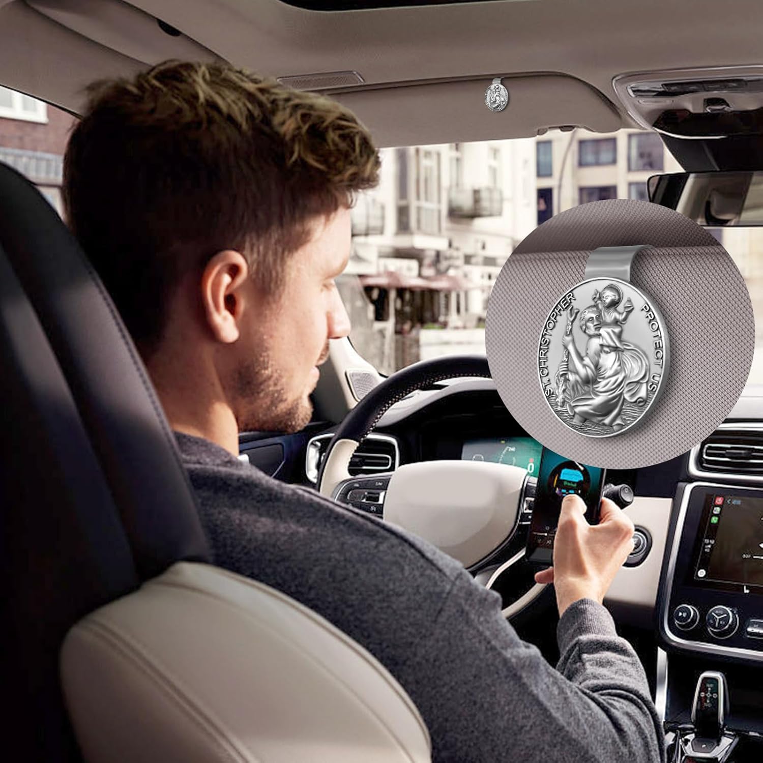 Saint Christopher Visor Clip Medal for Safe Driving – Perfect Religious Gift