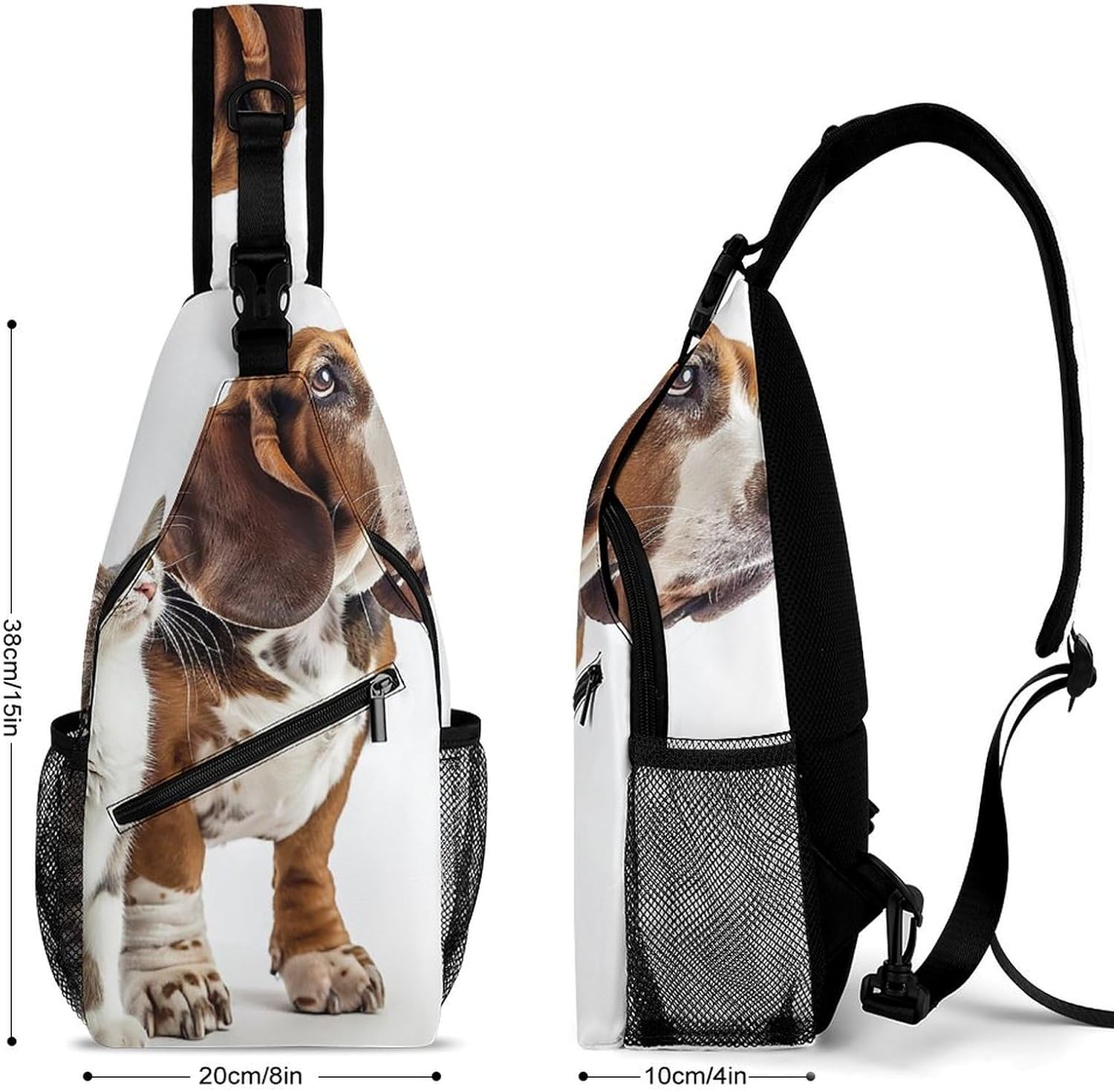Large Capacity and Adjustable Strap: This Cat And Dog Standing sling bag measures 7.5 x 3.5 x 15.3 inches, providing plenty of space for your essentials. The adjustable strap length (55-105cm) makes this backpack suitable for most people.