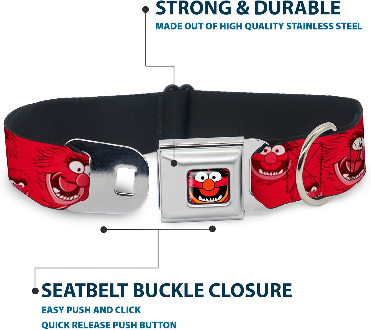 Buckle-Down Seatbelt Buckle Dog Collar – Animal Expressions Scattered Reds – 1″ Wide – Fits 15-26″ Neck – Large