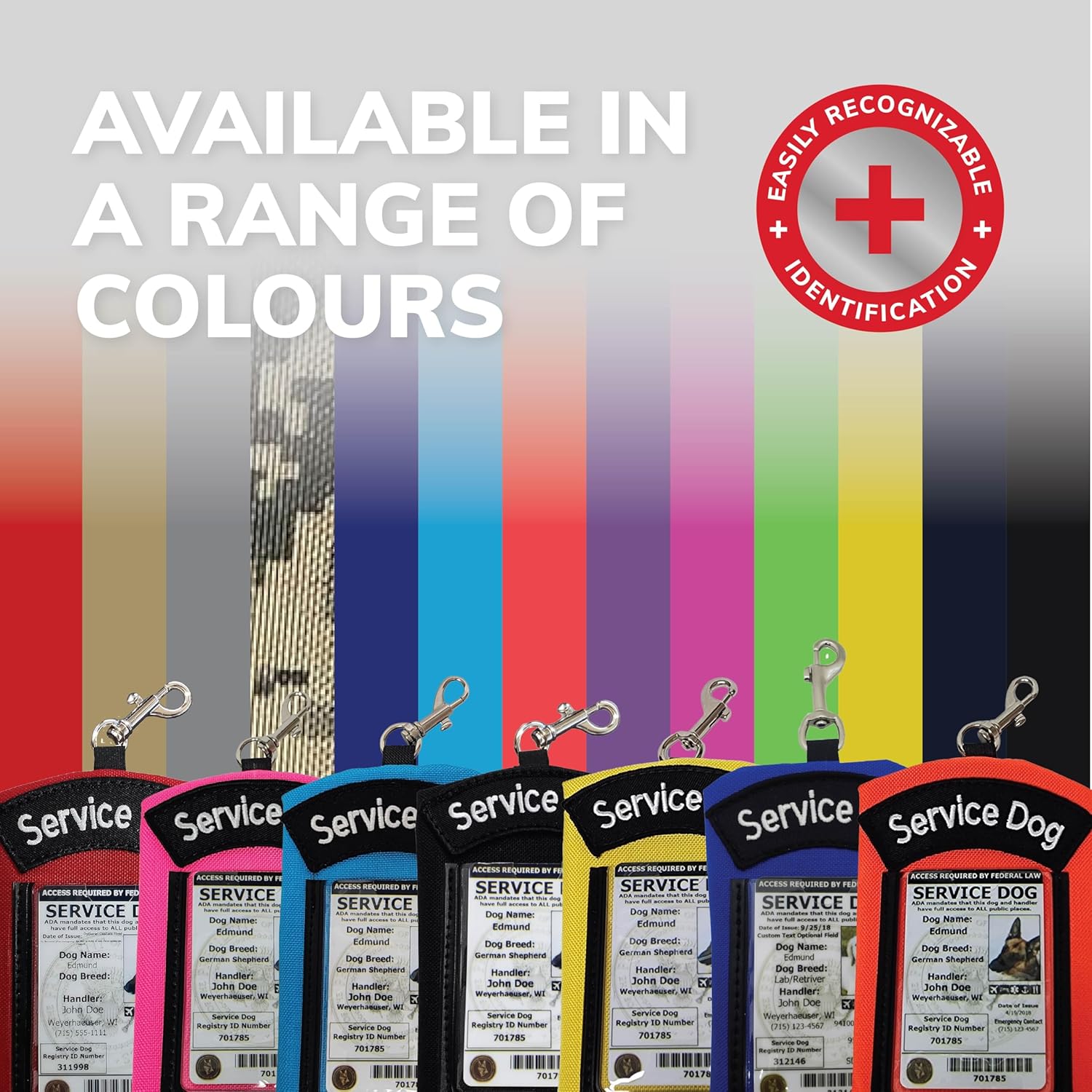 High Visibility – Our service dog id tag bag features the phrase “Service Dog” in bright white embroidered letters for maximum visibility. The bright, white on black bold embroidered lettering really enhances visibility and recognition, making it ideal for public outings