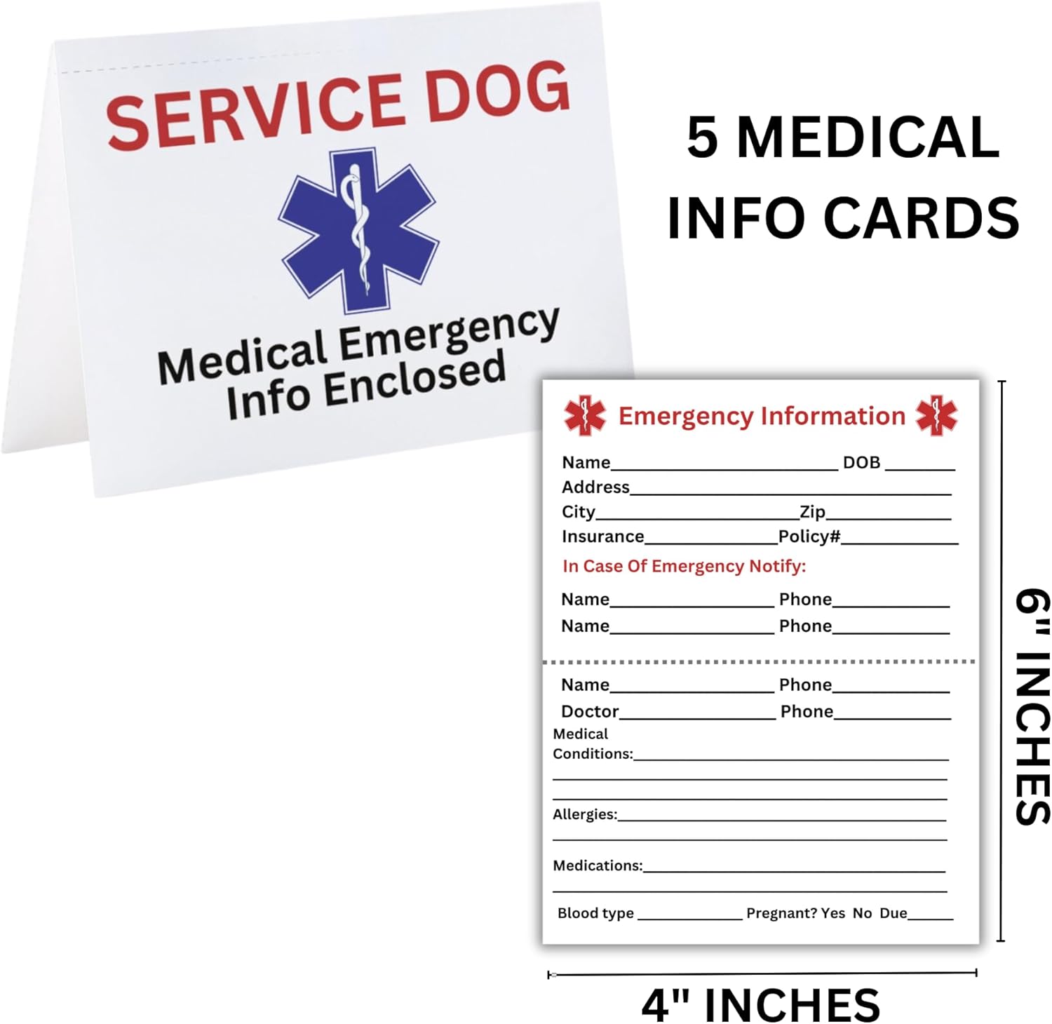 Help assist healthcare providers, EMT, and other emergency personnel by listing any medical conditions you have. Additionally, have informational cards regarding your service animal, their rights and yours with our ADA informational cards.