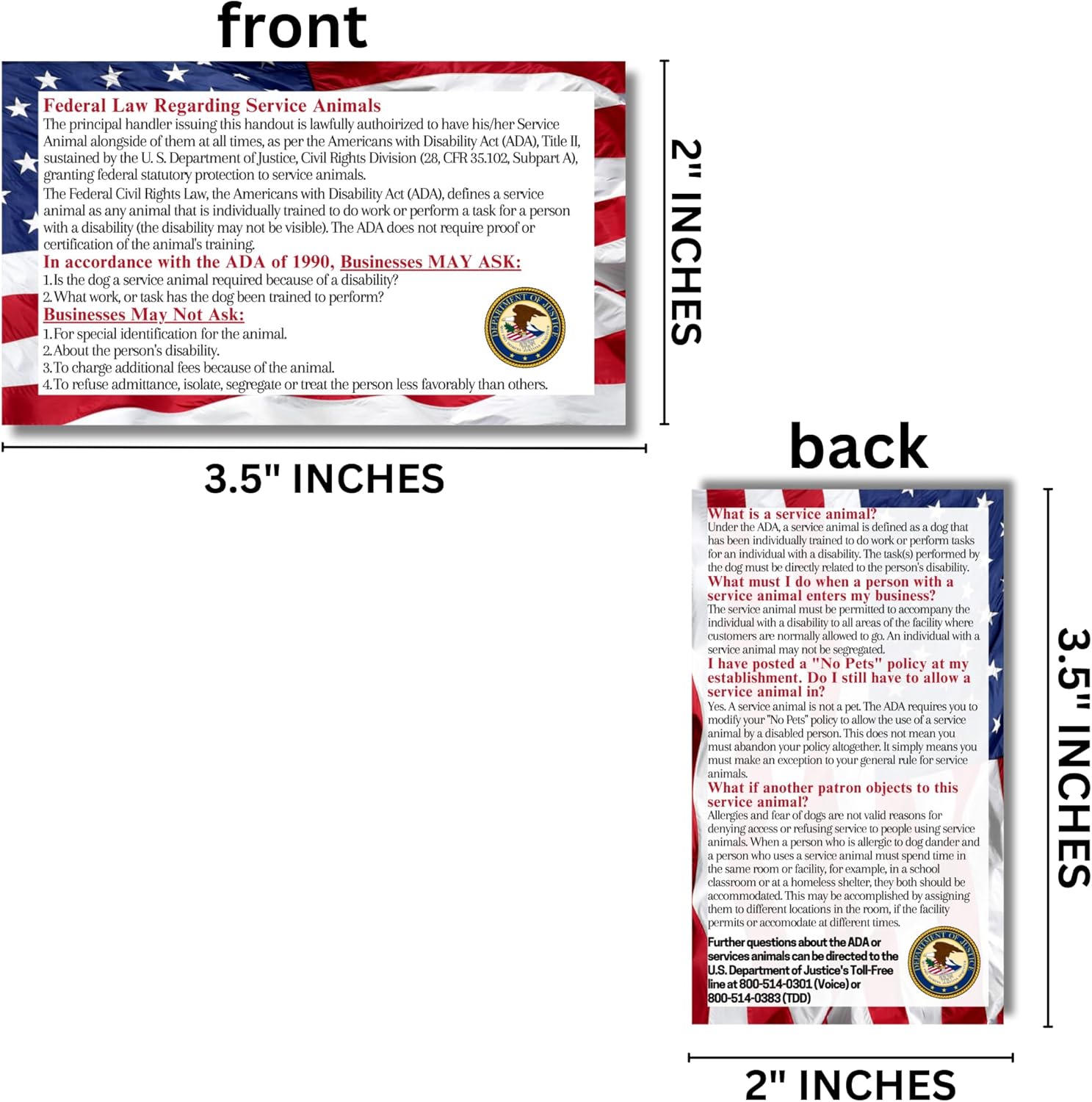 30 ADA Service Animal Informational Cards