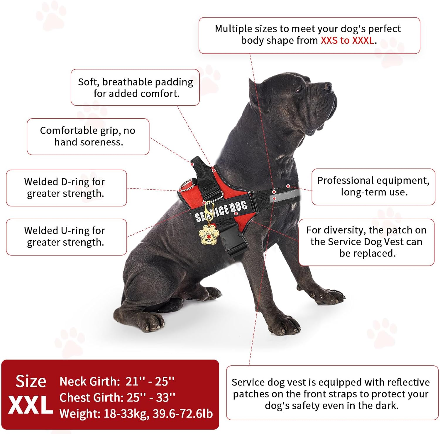 Service Dog Vest XXL: This service dog vest xxlarge not only allows your service dog to accompany you on daily walks and outdoor activities, but can also be your service dog training course equipment, so that your service dog can reach this best condition.
