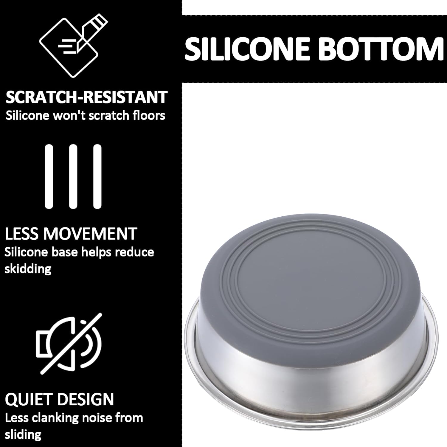 QUIET, NO SLIP, NO SPILL: The anti-slip grip on the bottom of each dog food bowl, this innovative silicone design ensures that the bowls stay securely in place, preventing any sliding or tipping. Gone are the days of your dogs always move the bowls when eating or drinking and makes a bigger mess