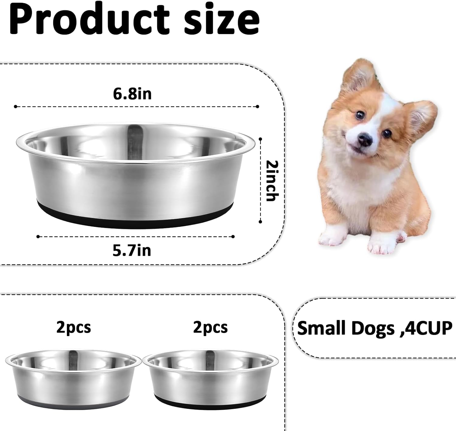 MULTIPLE SIZED SUIT YOUR PET: 4 cup (Recommend fill to 0 – 3 cups) suit for Small Dog Breeds.To prevent overfilling or spilling, We recommend that you choose dog bowls that are larger than your desired capacity