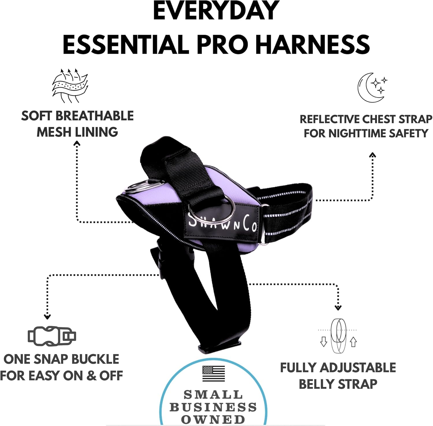 DURABLE AND COMFORTABLE DESIGN: The Essential Pro harness is made of heavy duty and high quality materials, including 3 reinforced rings for leash attachment points, soft and breathable mesh underside for all day comfort and sturdy neoprene padded handle for an upgraded look and feel.