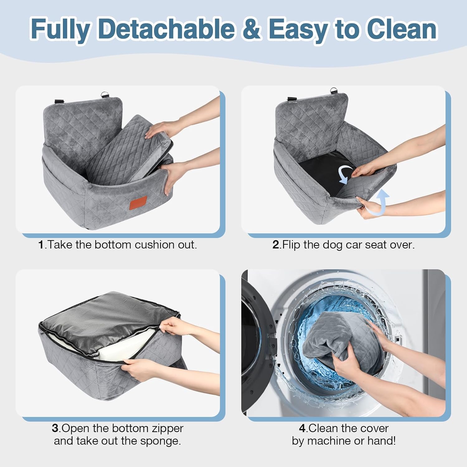 Comfort: The Dog Car Seat is a comfortable made from ultra-soft fabric and memory foam.The fabric is breathable,ensuring that dogs remain comfortable even during extended periods of travel, alleviating anxiety on long journeys