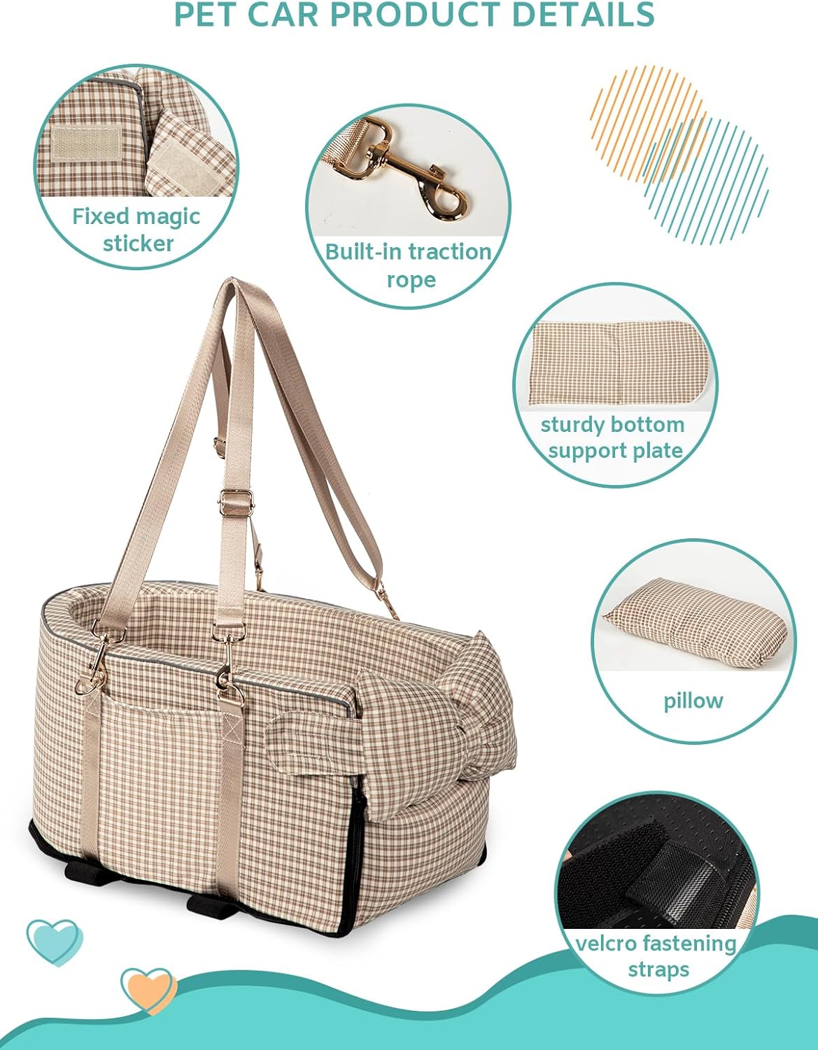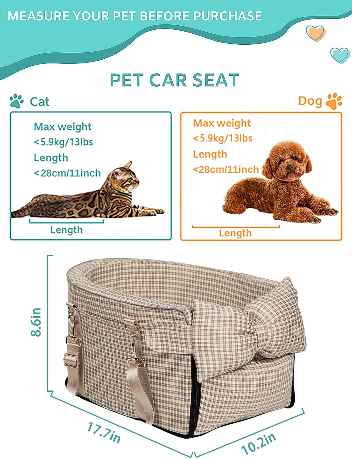 🧳 Dog Car Seat for Small Dogs,Center Console Seat for Puppy,Anti-Collapse Pet Car Seat with Soft Cushion Safety Belt, Portable Car Armrest Seat for Dog & Cat Under 15 lbs (Grid-Brown) — Dog Travel Gear Review & Current Price