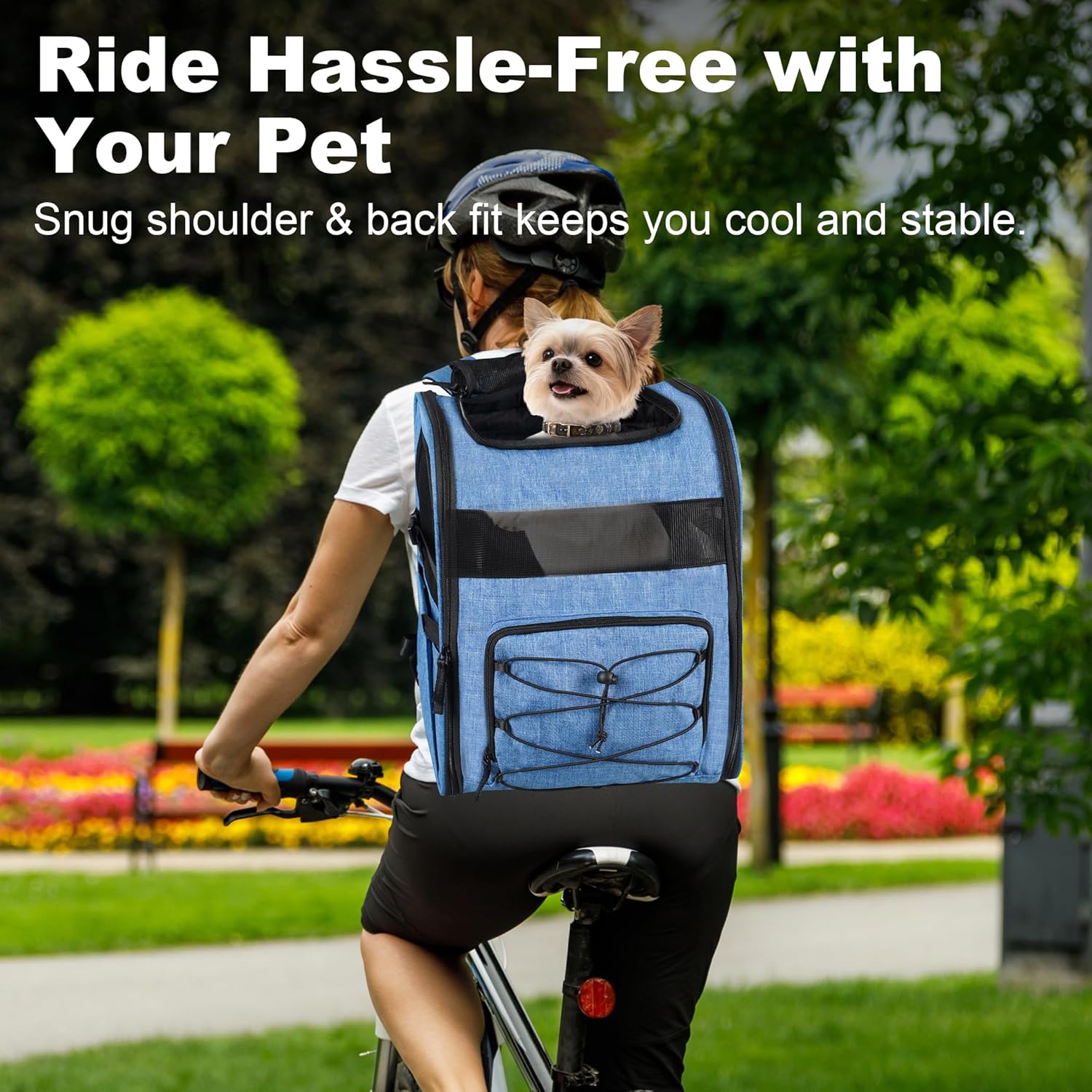 【Perfect Fit & Practical Storage】Ideal for small dogs up to 15lbs (Chihuahua, Pomeranian, Yorkie)—also fits small cats with similar weight. Two side pockets hold treats, leash, or waste bags—all essentials within reach. Lightweight design lets you hike for hours without fatigue, and the built-in standard pad offers basic comfort for your pet.