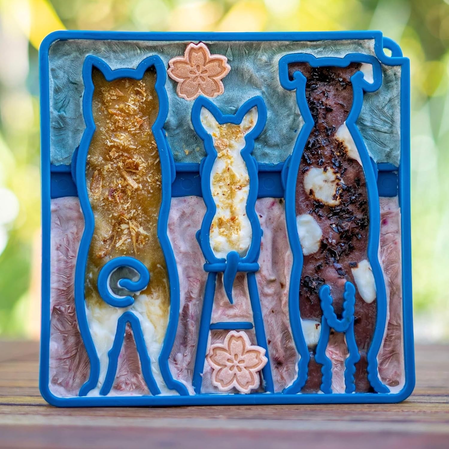 Once you spread the food into the Enrichment Feeders, you can consider freezing them, so you have them premade and handy for when you need them. Freezing the Enrichment Feeders increase the licking challenge and extends the amount of time it takes your dog to finish licking up all the food. Freezing is especially a good idea on hot summer days to help your pooch cool off.