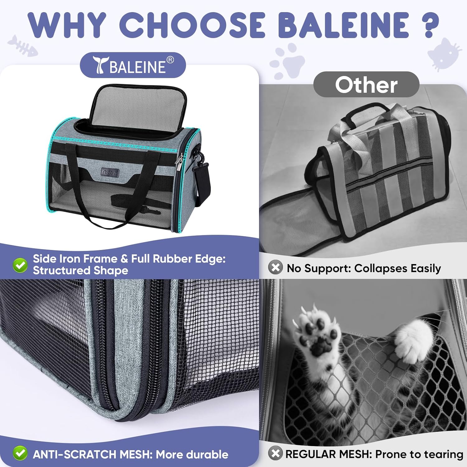 ✈️ BALEINE Cat Carrier, Puppy Dog Carrier for Small Medium Pets Up to 15 Lbs, Soft-Sided Dog Travel Bag with Safety Zippers, Collapsible Pet Carrying Case (Gray, L, 17″x11″x11″) — Airline-Approved Dog Carrier Review & Current Price
