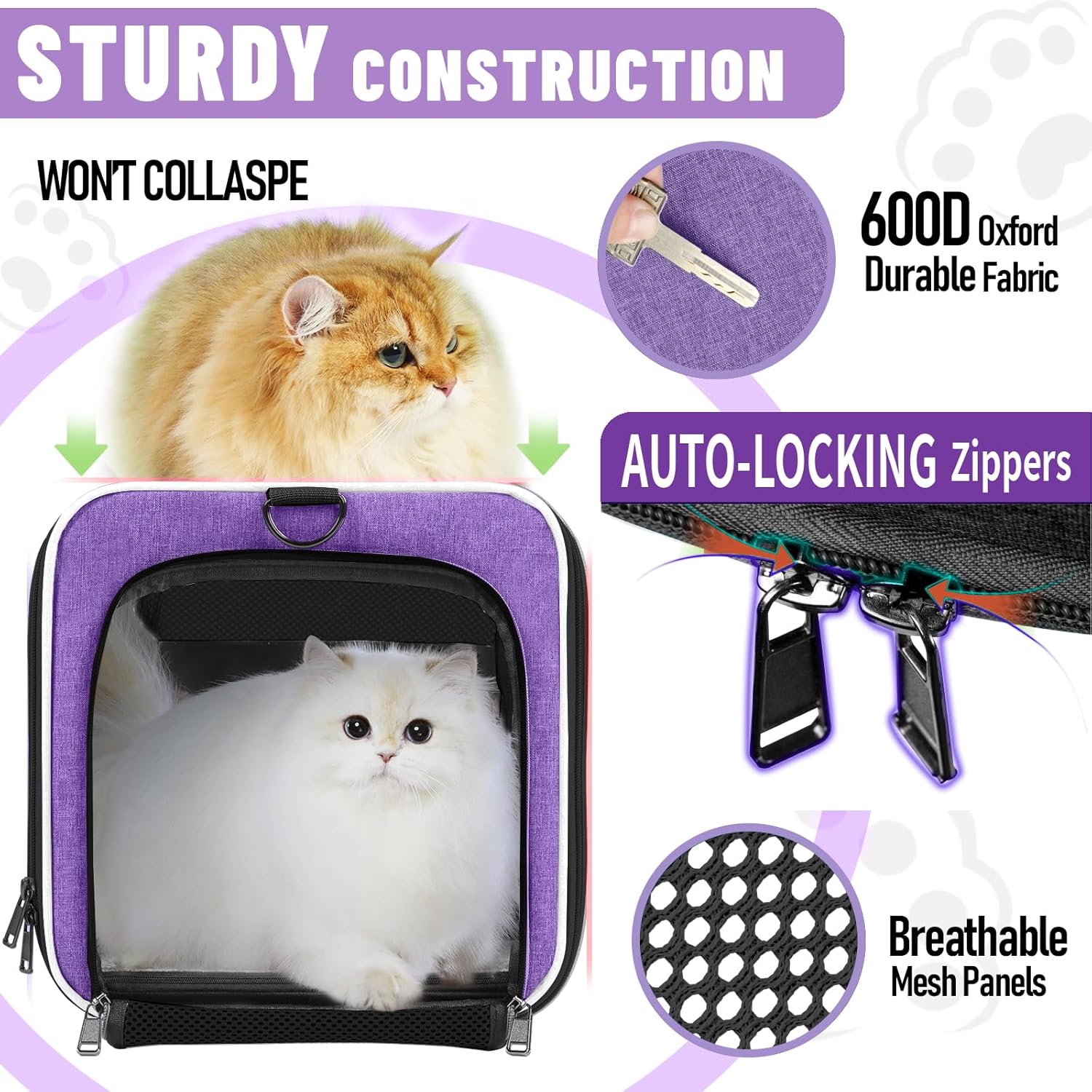 5-Sided mesh ventilation provides airflow to keep your pet cool and comfy, helping you check and interact with them during long-distance car rides. Roll-up mesh top entrance with Velcro and side zippered opening make it easy to load your kitten