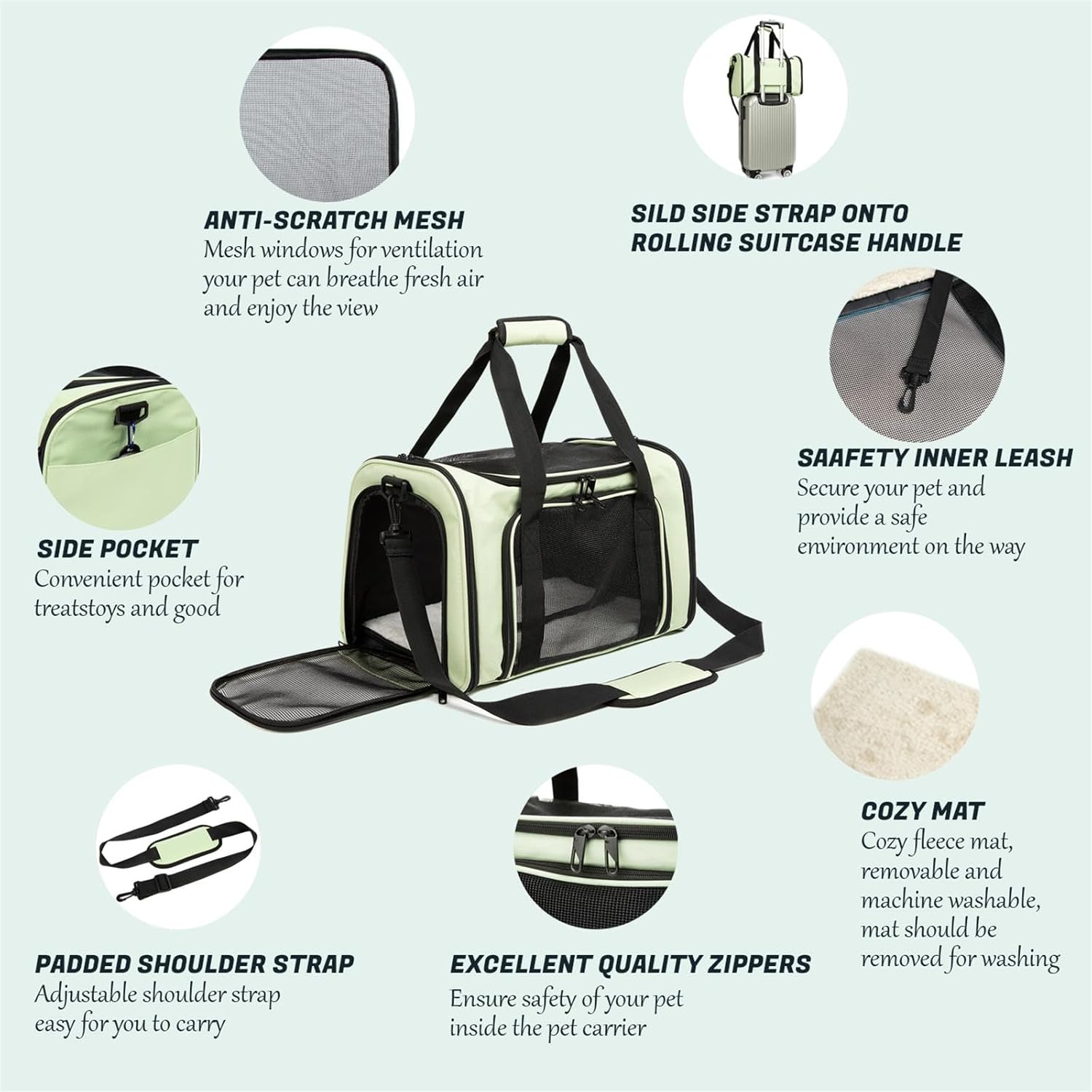 🧳 Cat Carrier Dog Carrier Pet Carriers for Medium Small Cats Dogs Puppies up to 15 Lbs,TSA Airline Approved Small Dog Cat Carriers Soft Sided,Collapsible Travel Puppy Carrier (Green, Large) — Dog Travel Gear Review & Current Price
