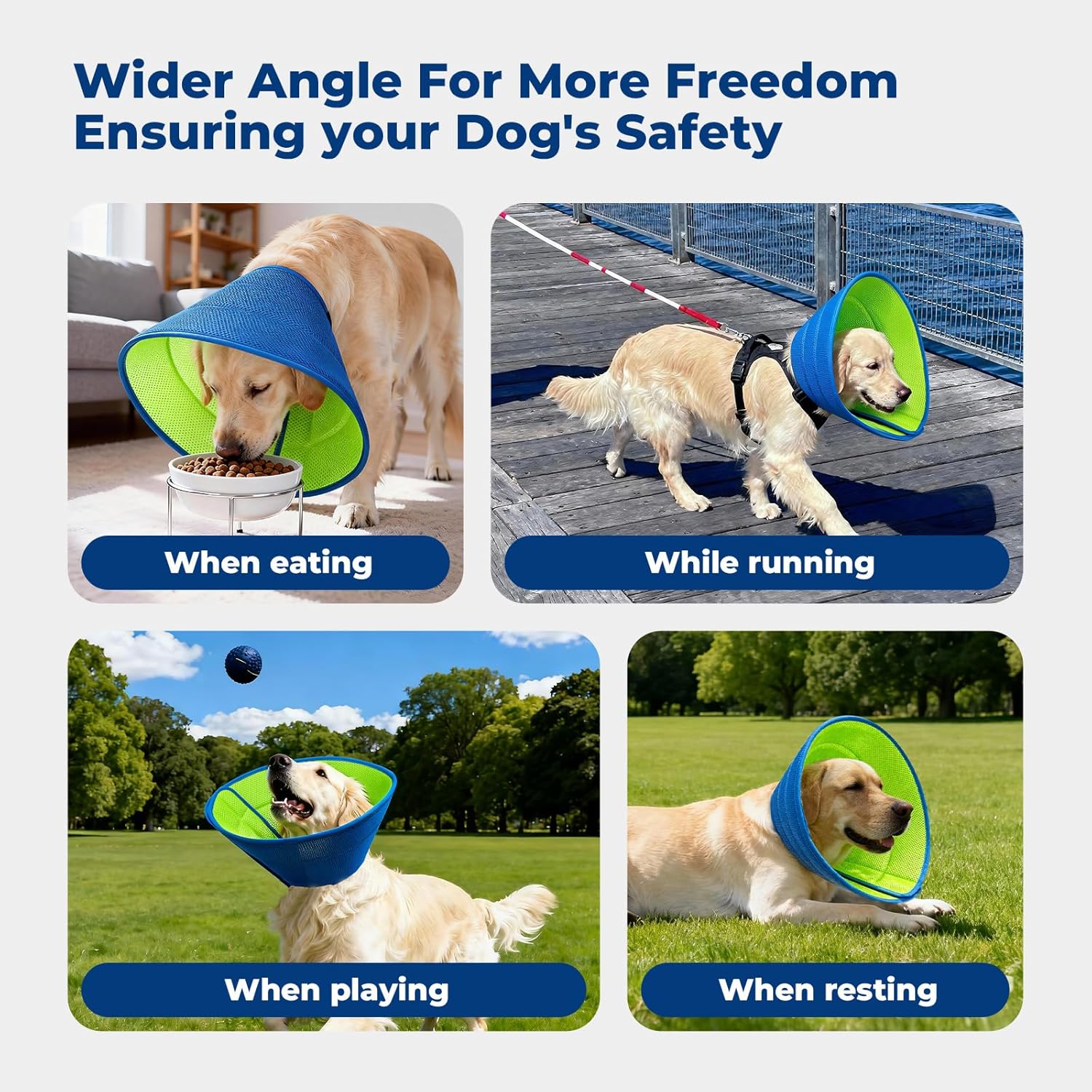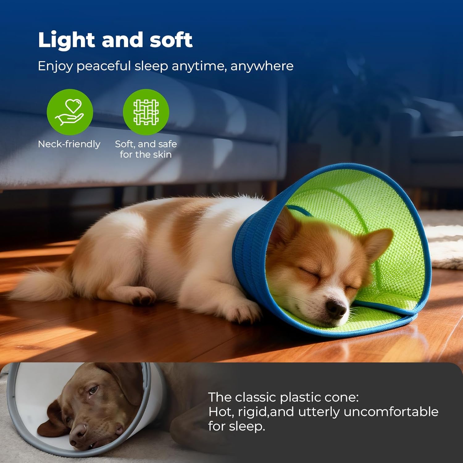 √【Soft and breathable】The dog cone is made of carefully crafted breathable sandwich mesh fabric. It is soft and breathable, providing gentle protection without the stiffness of traditional plastic collars, keeping pets comfortable. It is very suitable for dogs after surgery