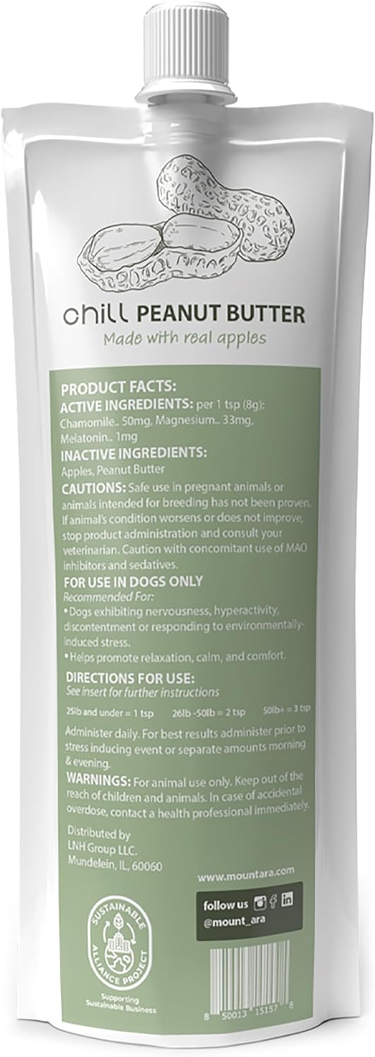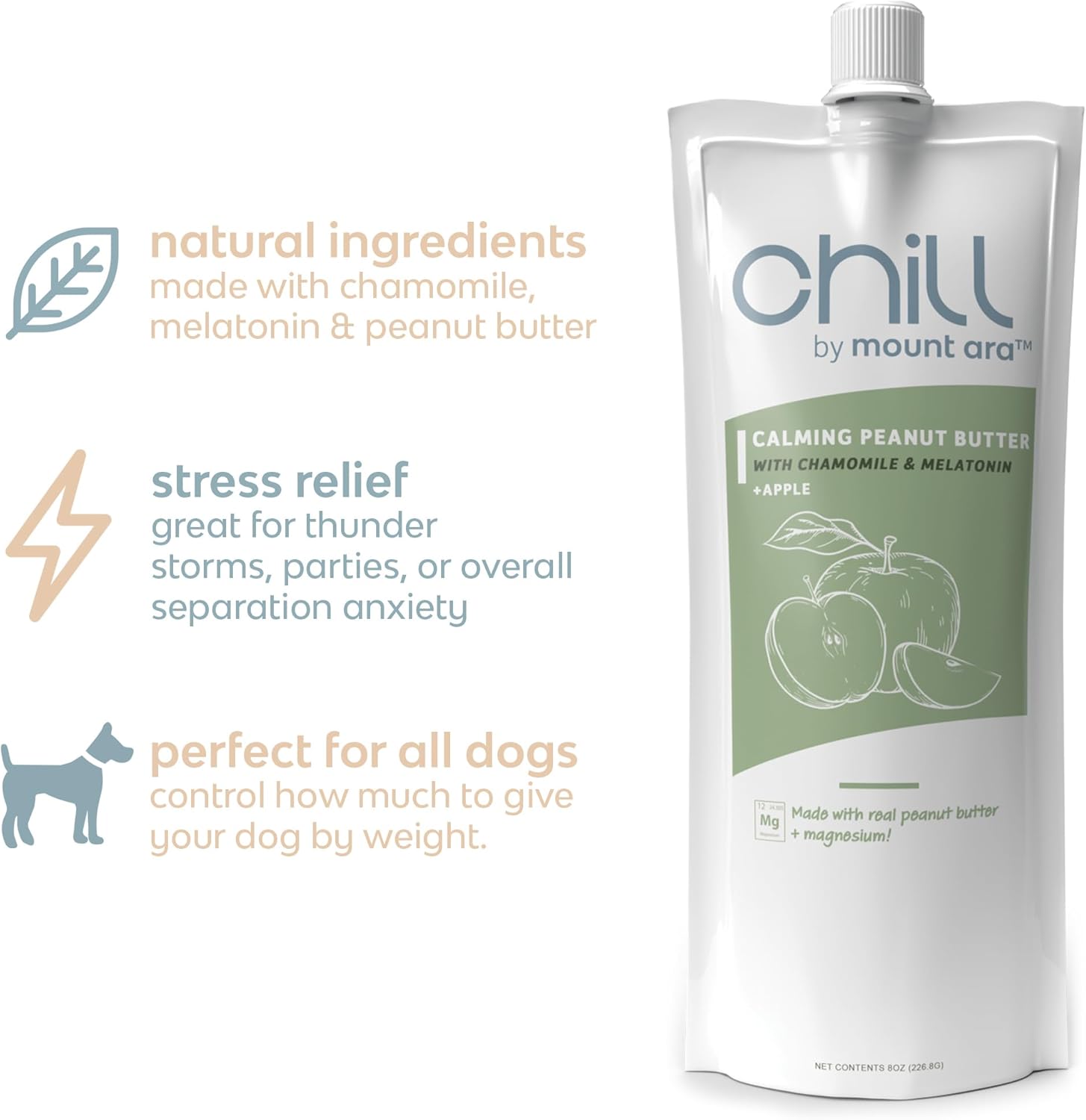Dog Calming Peanut Butter with Chamomile, Melatonin, Magnesium and Apple, Helps Reduce Anxiety in Dogs, 8 Ounces