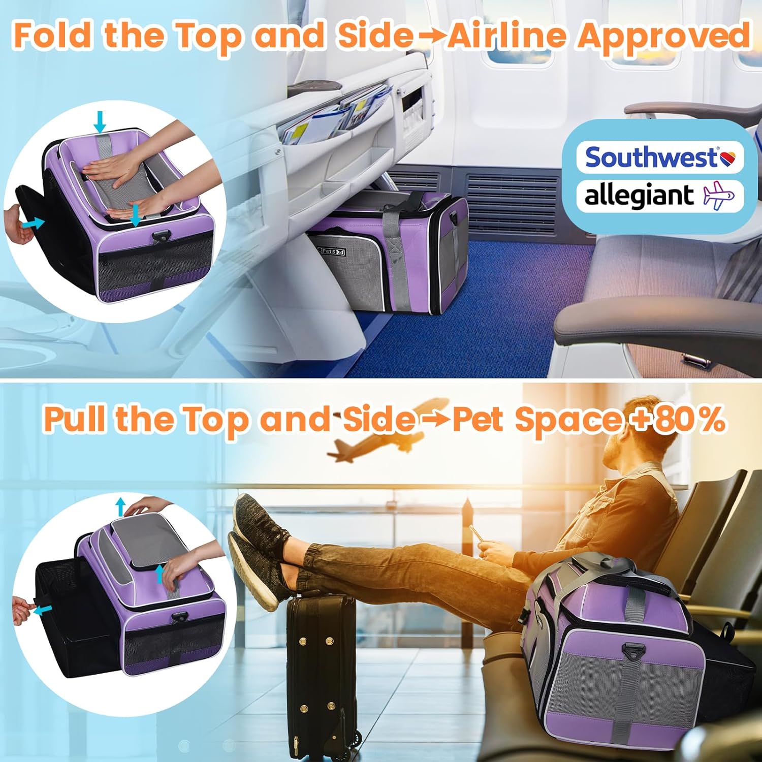 🧳 Petskd Top and Side Expandable Pet Carrier 19x13x9 Inches Southwest Allegiant Airlines Approved, Soft-Sided Carrier for Small Dog Under 12 lbs and Large Cat Under 15 lbs(Purple) — Dog Travel Gear Review & Current Price