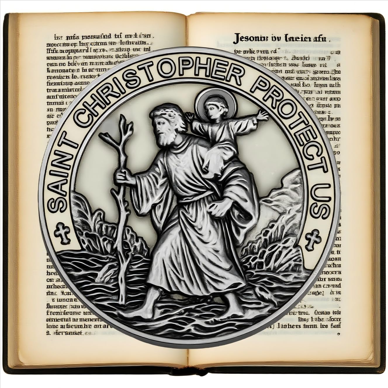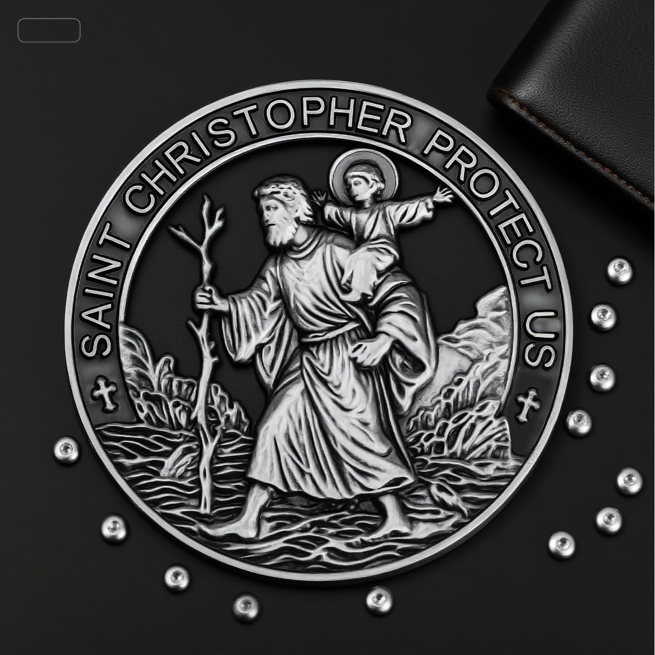 St. Christopher Medal for Car: A high-quality metal medal featuring the image of St. Christopher, the patron saint of travelers. This religious symbol is specifically designed for cars, making it a perfect accessory for individuals seeking protection and guidance while on the road
