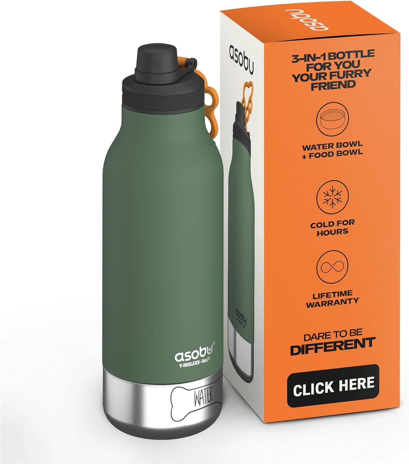 ❤️INNOVATIVE 2-IN-1 DESIGN. Easily turn over the leaf and form a water bowl. Quick release buttons allow to control the water flow out or flow back. Save your unused water! The wide bottle mouth (1.8 inches) is suitable for ice cubes and is easy to fill water.