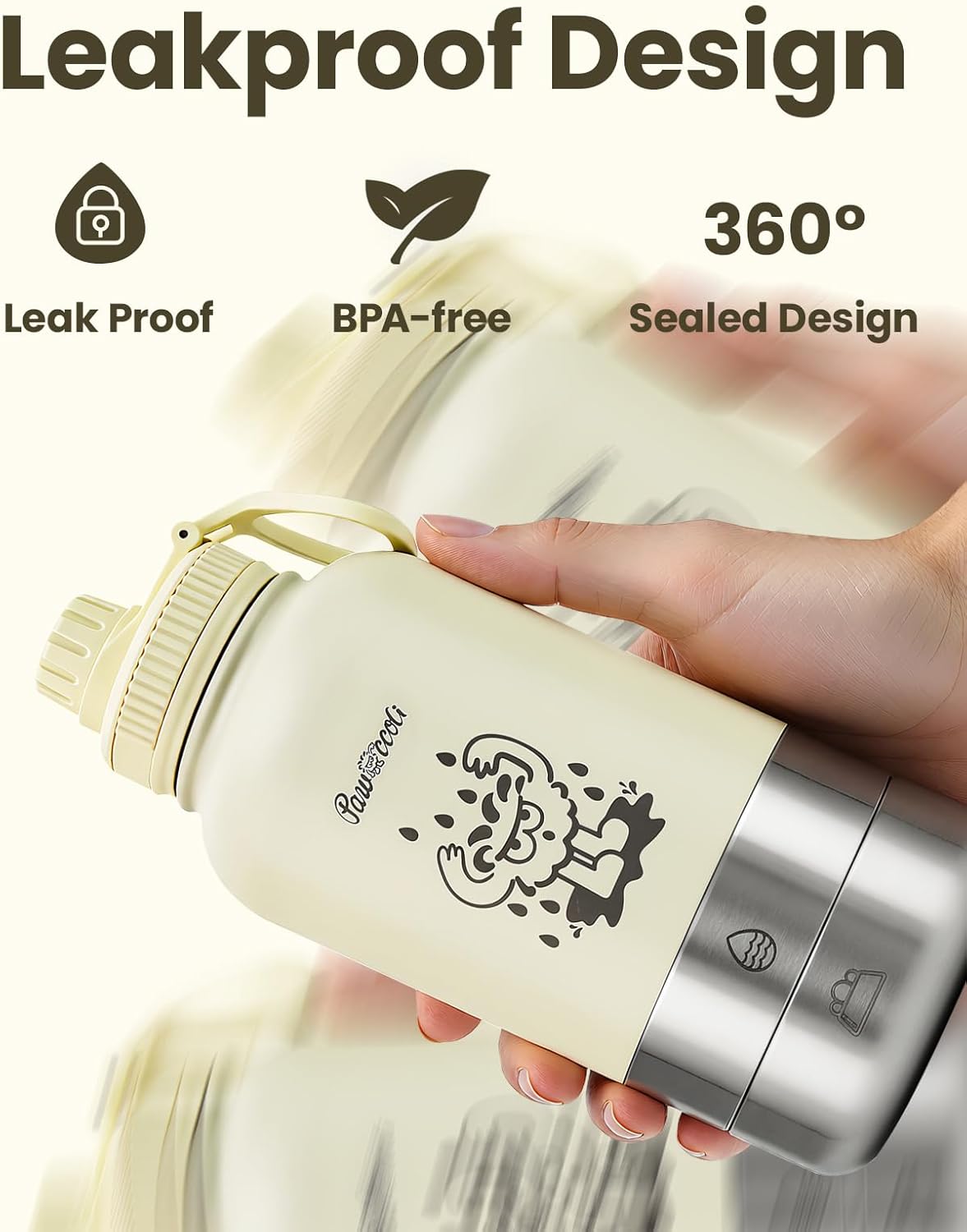 3 in-1 Dog Water Bottle: No more carrying multiple bottles and containers! This innovative dog water bottle system combines a large 34oz insulated water reservoir with two detachable, leak-proof bowls for water and food. Perfect for keeping both you and your furry best friend hydrated, fed, and happy on any adventure.
