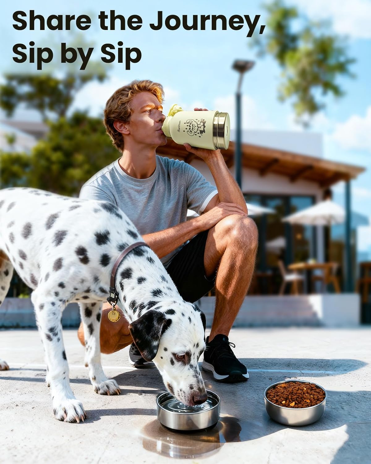 Stainless Steel 34oz Dog Water Bottle with Bowls for Hiking & Camping
