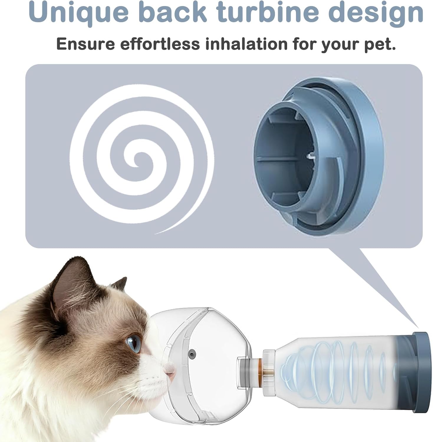 【Unique back structure of the aerosol bottle allows for easy inhalation】 The unique back structure of the cat inhaler spacer creates a turbine effect that allows cats to inhale gently while generating strong and concentrated suction.