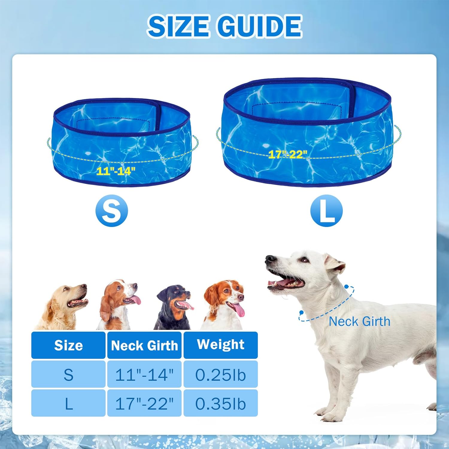 MULTI-SIZE FLEXIBILITY: Available in sizes for small to large breeds, these summer bandanas for dogs adapt to neck circumferences from 11″ to 22″(adjustment range: S: 11″-14″; L: 17″-22″). The breathable fabric and lightweight gel ensure comfort without restricting movement. Note: The collar itself has a certain weight, please make sure your dog can afford it before buying