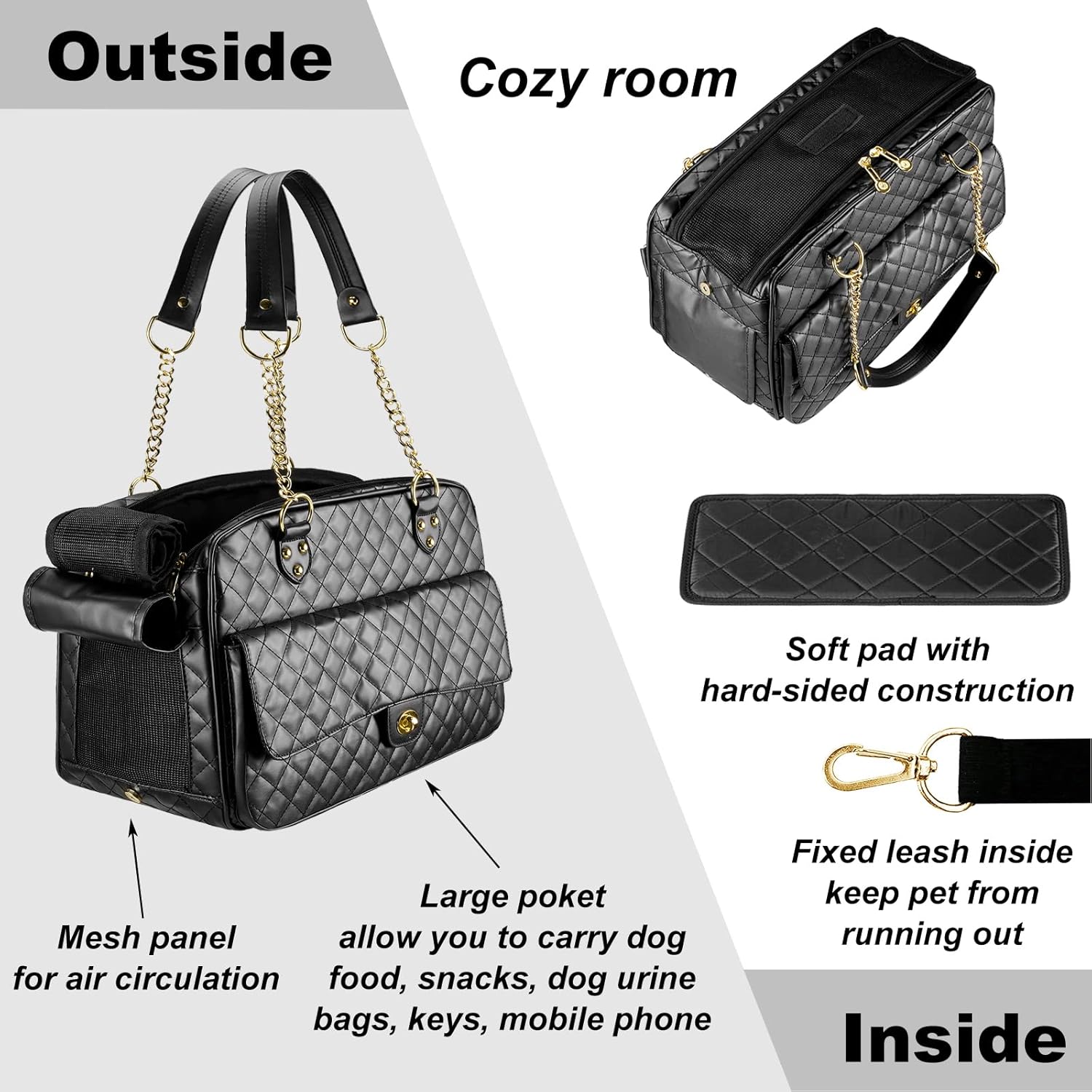Stylish Dog Purse Carrier for Small Pets, Airline Approved, 8lbs Capacity
