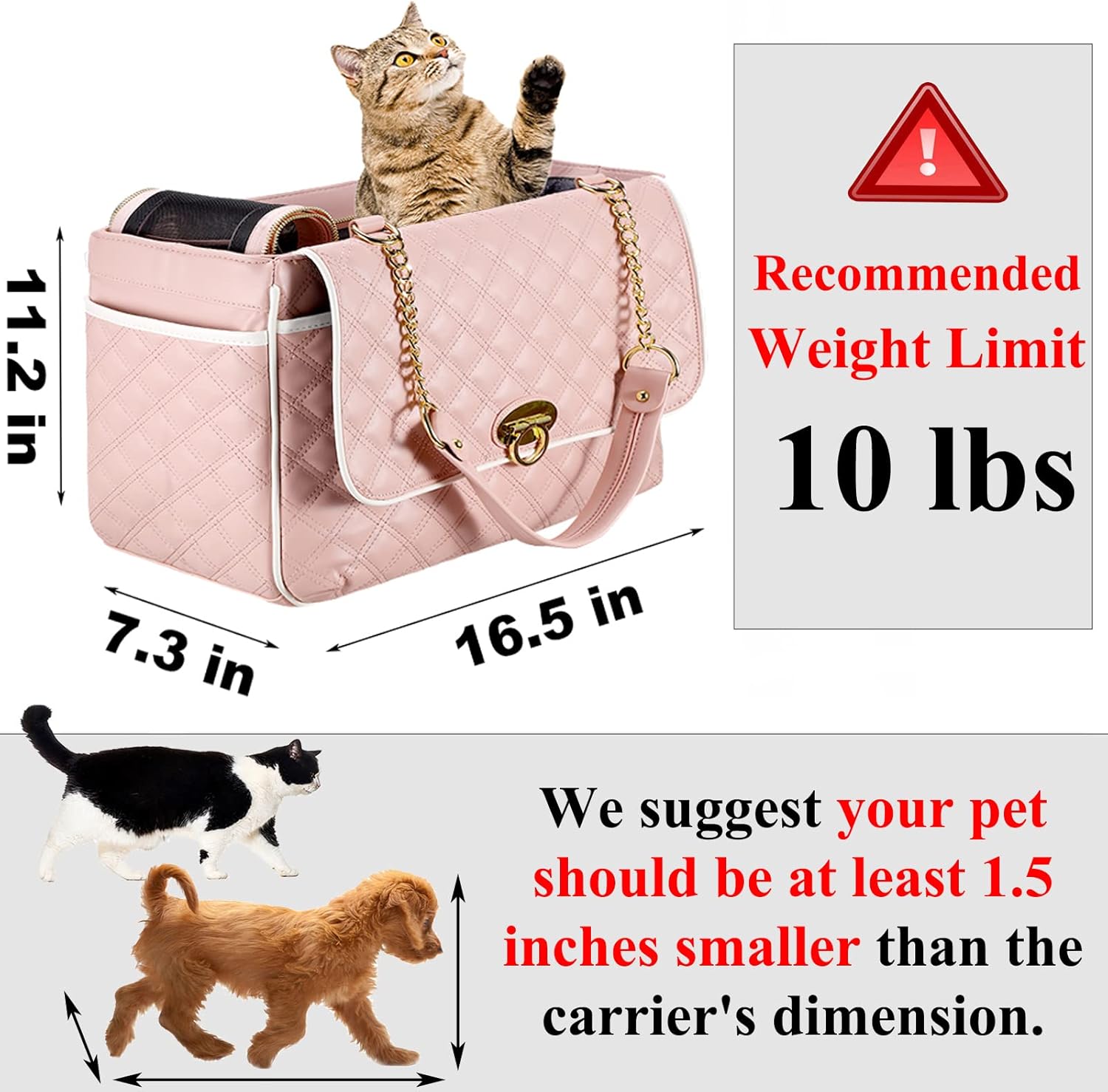 ✈️ Fashion Dog Purse Carrier for Small Dogs with 2 Super-Large Pockets, Holds Up to 10lbs PU Leather Pet, Cat Carrier, Airline Approved Puppy Purse for Travel (Pink, Small Size) — Airline-Approved Dog Carrier Review & Current Price