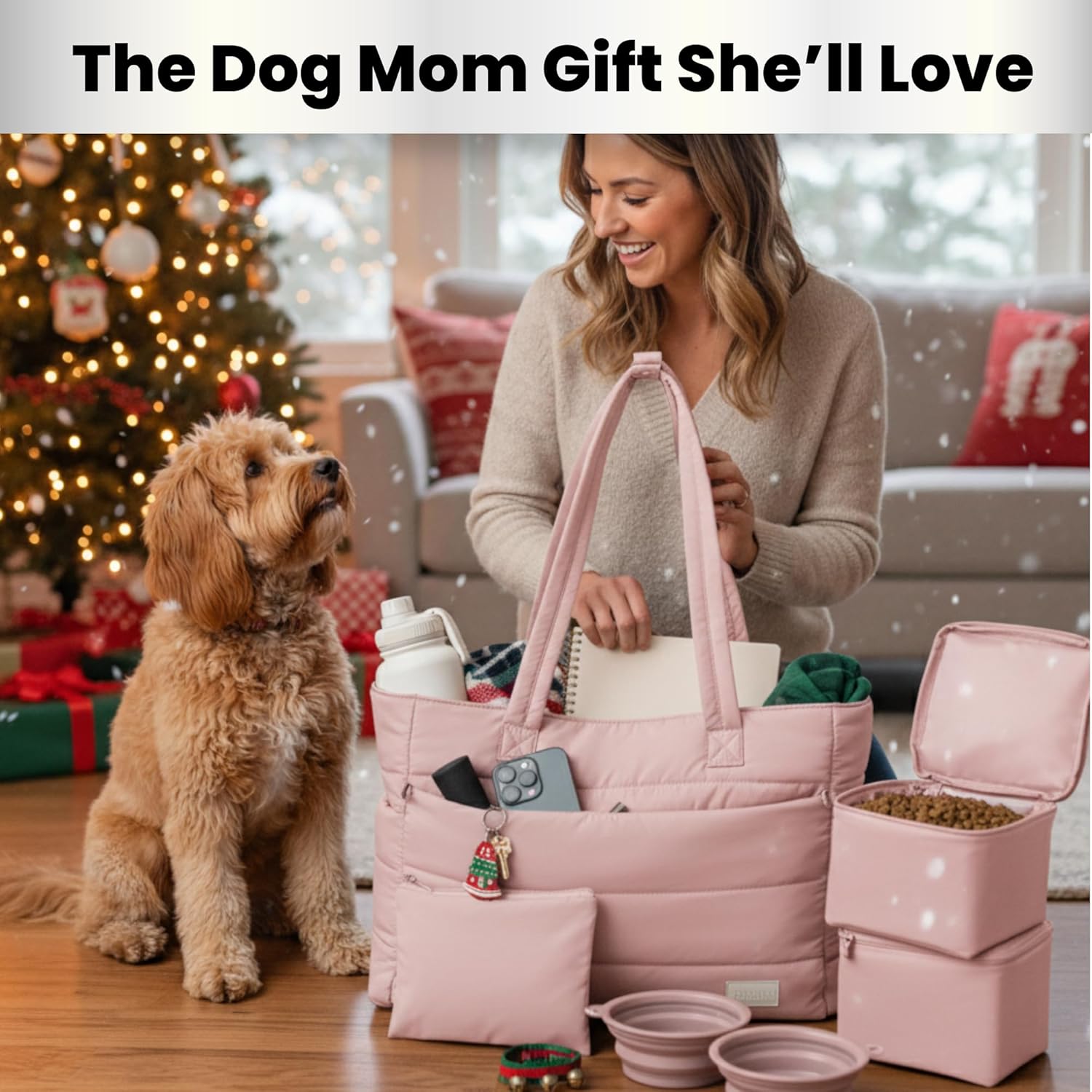 🧳 Puffer Dog Travel Bag for Dog Moms – Doggy Diaper Bag with Pet Bowls & Food Storage or Everyday Puffy Tote – Christmas Doggy Mom Gifts for Women – Lightweight, Travel-Ready Gift for Pet Lovers – Pink — Dog Travel Gear Review & Current Price