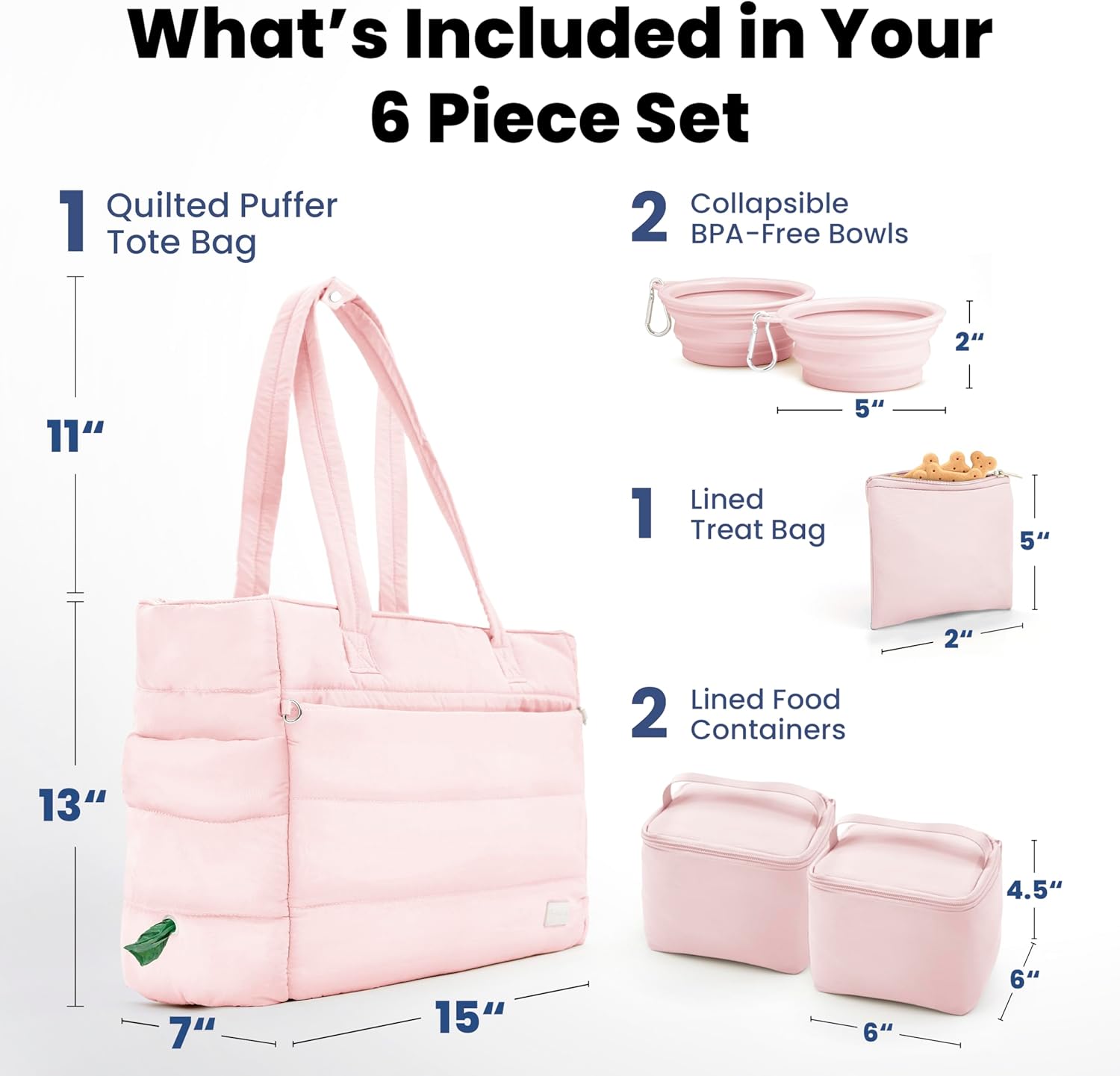 🧳 Puffer Dog Travel Bag for Dog Moms – Doggy Diaper Bag with Pet Bowls & Food Storage or Everyday Puffy Tote – Christmas Doggy Mom Gifts for Women – Lightweight, Travel-Ready Gift for Pet Lovers – Pink — Dog Travel Gear Review & Current Price