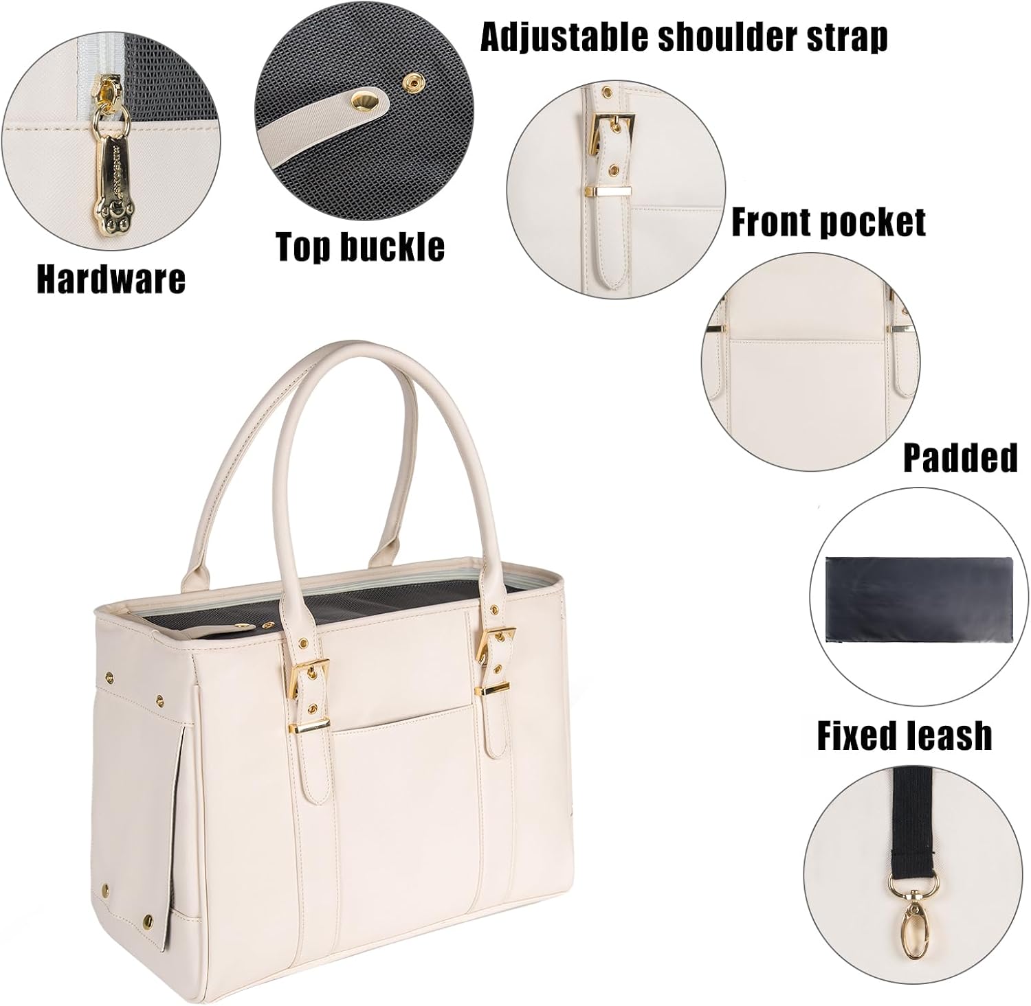 ✈️ Fashion Pet Carrier Dog Purse Cat Bag Soft-Sided Carriers Travel Airline Approved, Stylish Leather Tote Handbag for Small Animal Puppy Kitten (White) — Airline-Approved Dog Carrier Review & Current Price