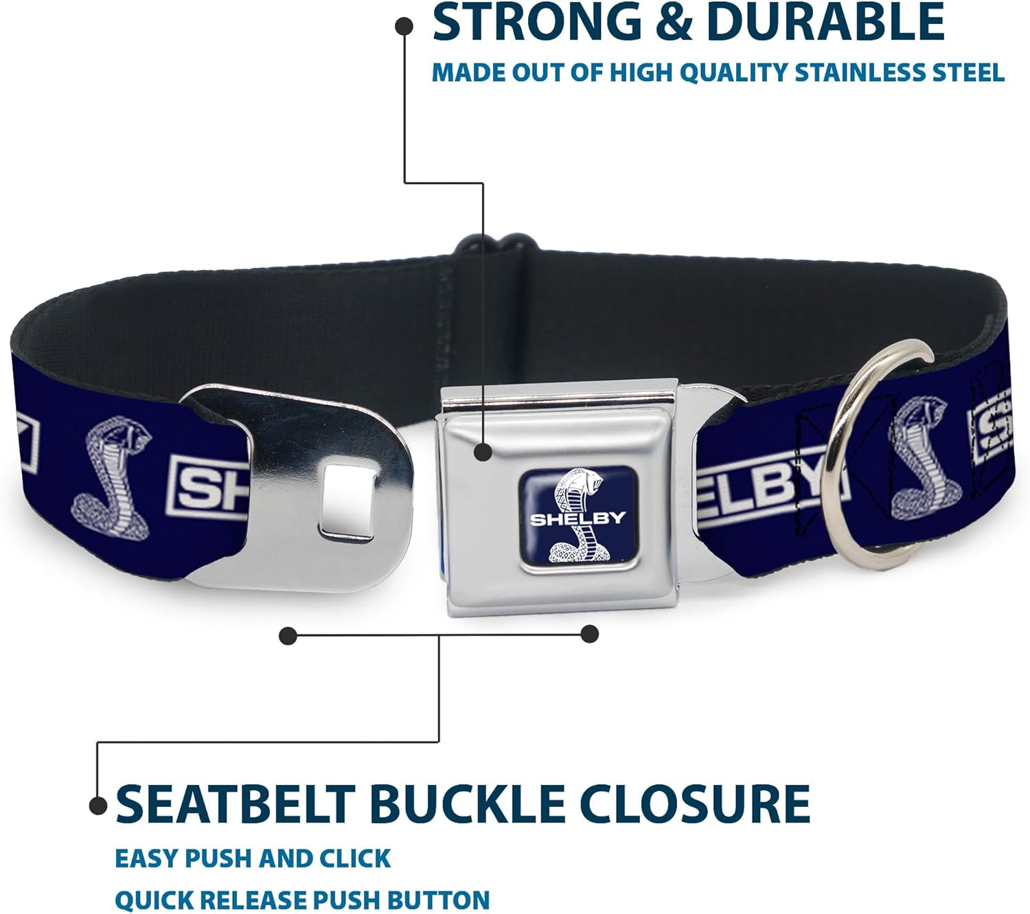 🧳 Dog Collar Seatbelt Buckle Shelby Box Logo and Super Snake Cobra Blue White 16 to 23 Inches 1.5 Inch Wide — Dog Travel Gear Review & Current Price