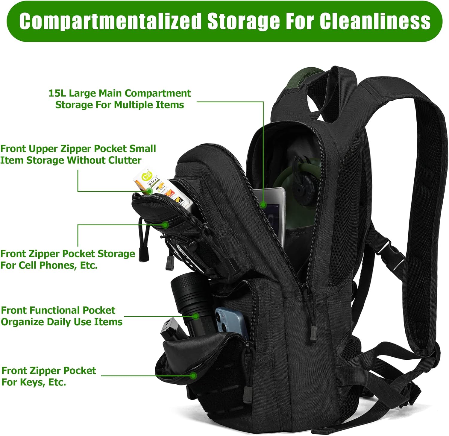 Molle & Velcro System: Specially designed for outdoor activities with a velcro and molle system, so you can easily finish expanding the load and add more extra accessories.The perfect combination of velcro and 4 molle straps allows you to easily build your own personalized backpack