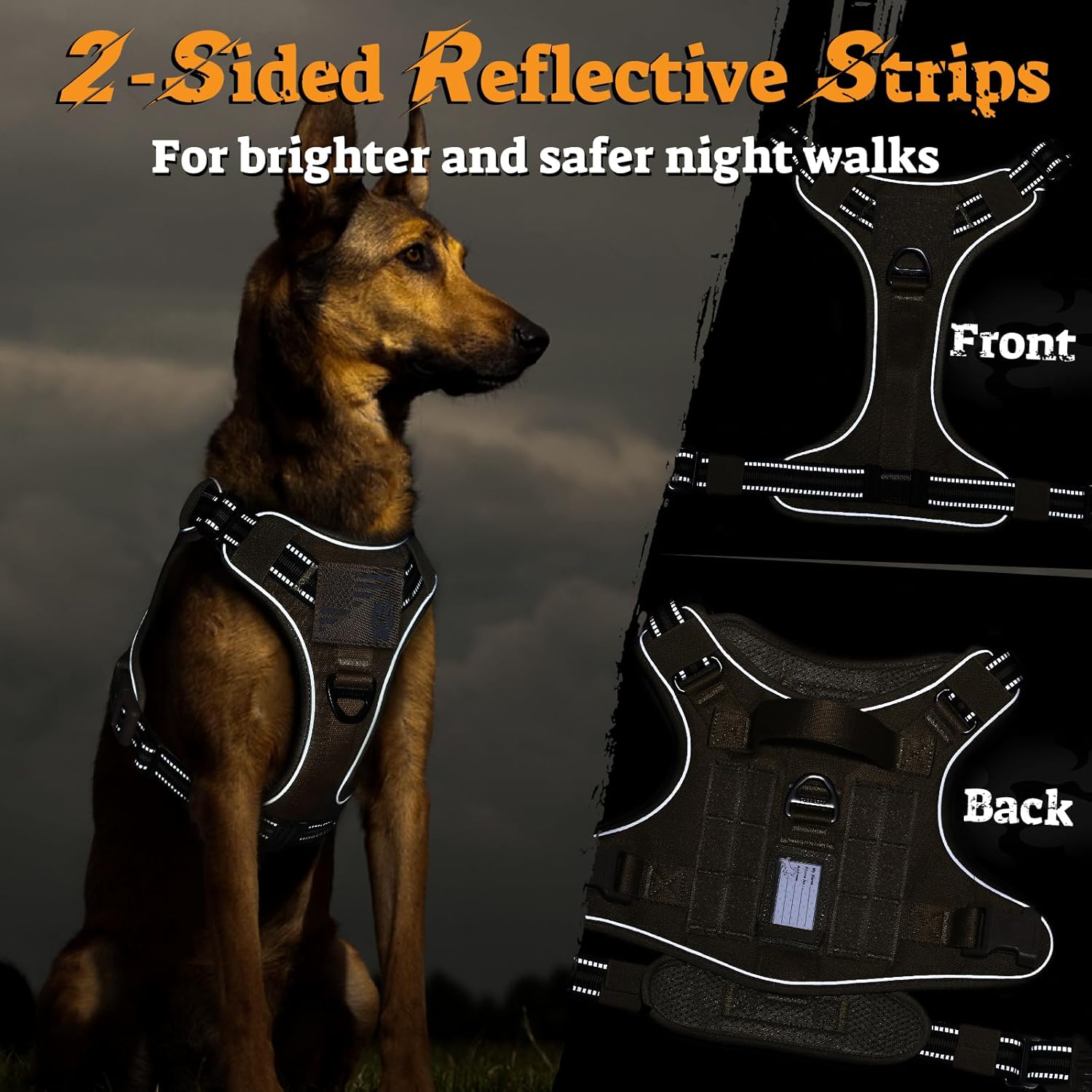 Comfortable and Secure: The harness is crafted with breathable cushion padding and a soft edge for cozy wearing, while the oxford cloth material and reinforced stitches at key stress-bearing parts make it rugged and sturdy. Furthermore, the all-around reflective stripes enhance visibility and security in the dark