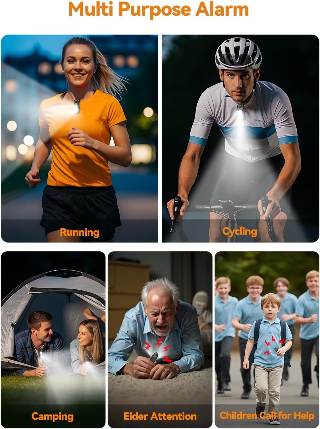 【Clip on Light & 135dB Personal Alarm】The alarm for women delivers powerful illumination for clear visibility during nighttime runs, walks and underground parking to ensure safety. When you walk alone or encounter an emergency, double click the button to activate a (130dB Upgraded to) 135dB high-frequency alarm (equivalent to a car horn). The piercing alarm covers a 50 meter radius, alerting others and deterring threats. Instant alert for emergencies, providing peace of mind