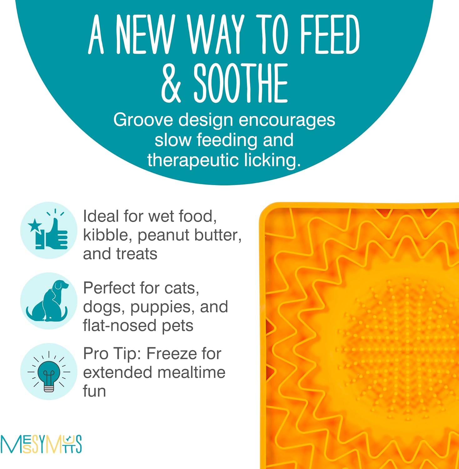 SLOW FEEDER ALTERNATIVE – The groove design of this 9.5 x 9.5-inch silicone mat will slow your pet’s intake of food while providing therapeutic benefit of licking. Spread kibble, yogurt, wet food, peanut butter, supplements, or any of your pet’s favorite treats on the mat and let their minds work while prolonging enjoyment. Mat works for all cats, puppies, and dogs, even those with flat noses. Pro Tip: Freeze for ultimate stimulation.