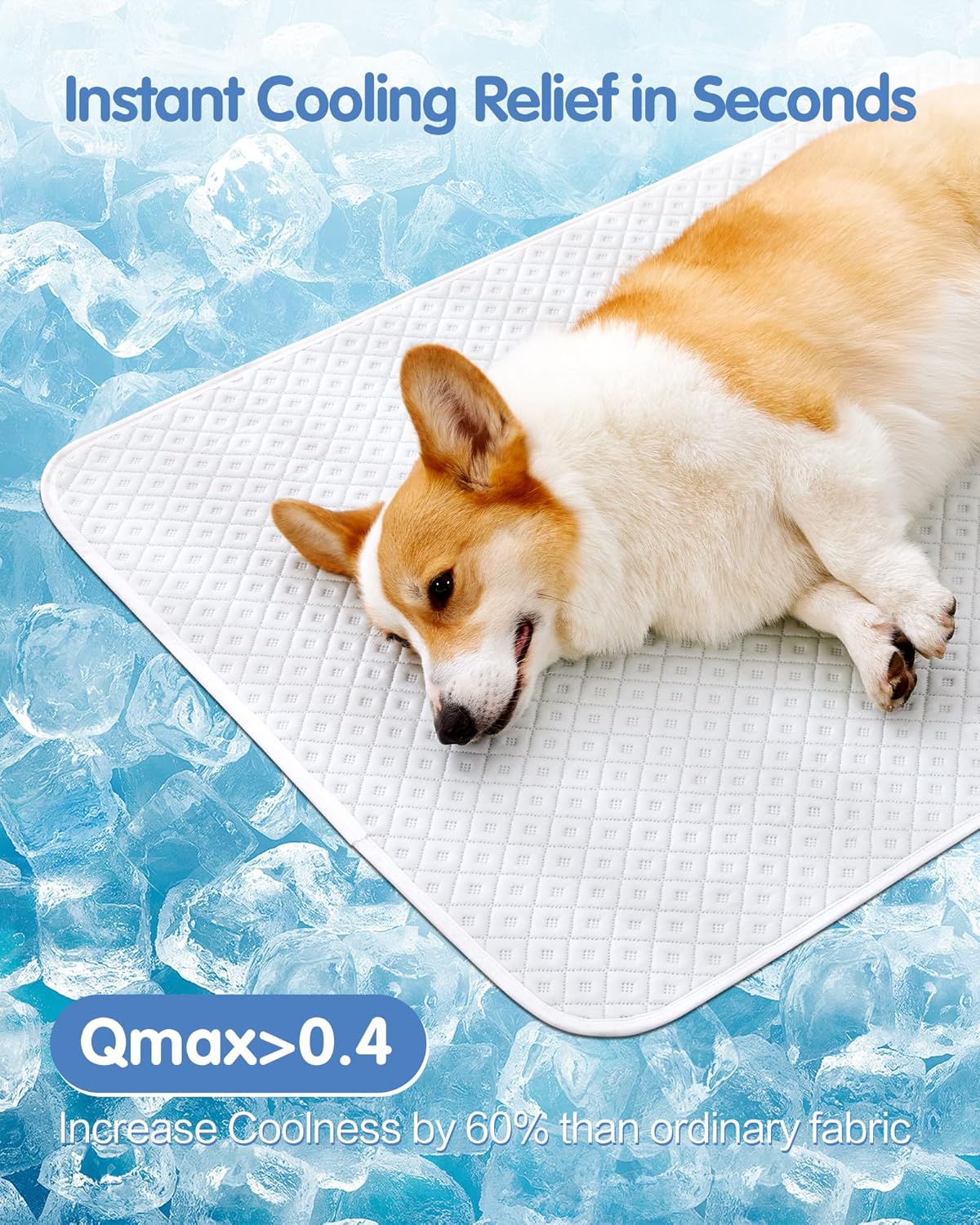 Instant Cooling Relief for Your Pets – Our dog cooling mat uses 100% PE cooling fabric to instantly lower surface temperature by 6-12°F (3-6°C), providing quick relief for overheated pets during hot summer days.